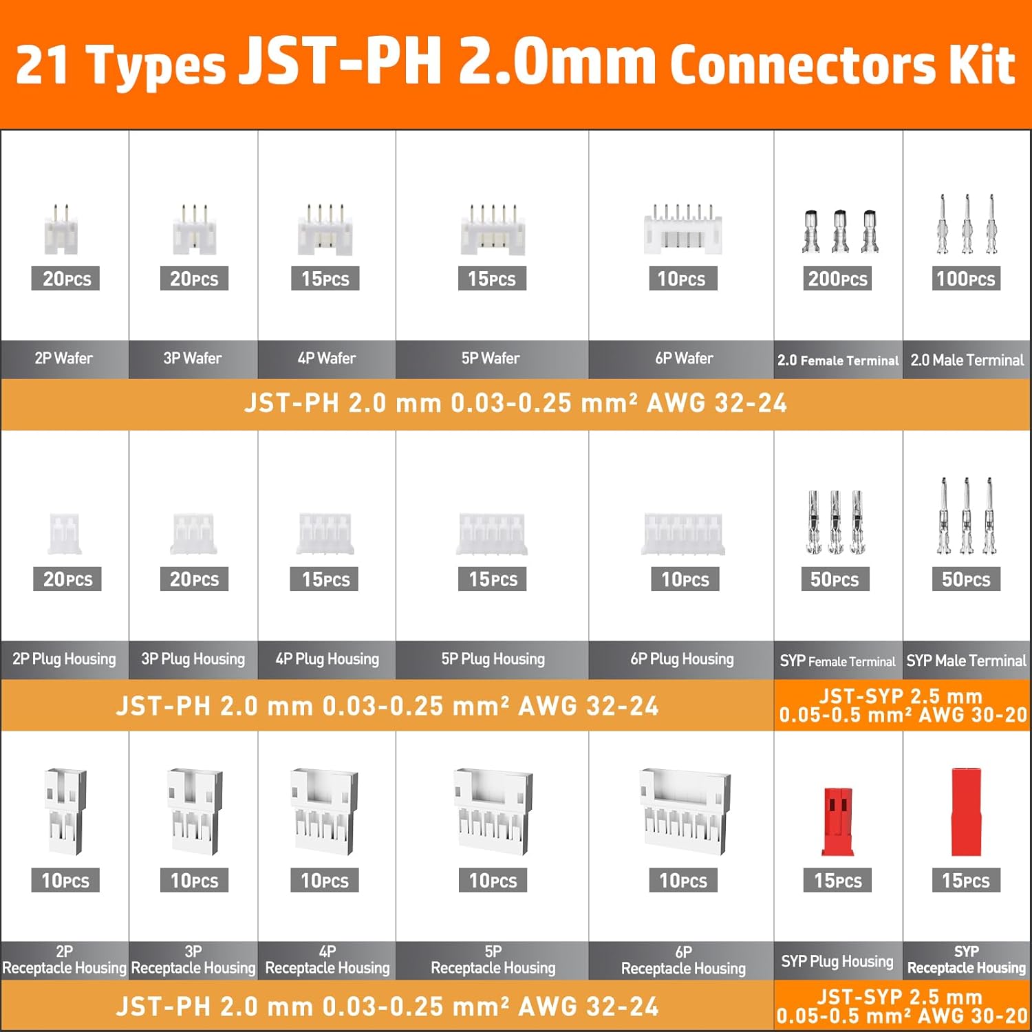 - JST PH 2.0mm Stecker Set: Das Steckergehäuse unseres Werkzeugs besteht aus isolierendem Kunststoff, während die Stecker/Buchsen aus hochwertigem, vernickeltem Metall mit hoher Verdrahtungssicherheit, Rostschutz und Antioxidationseigenschaften bestehen.