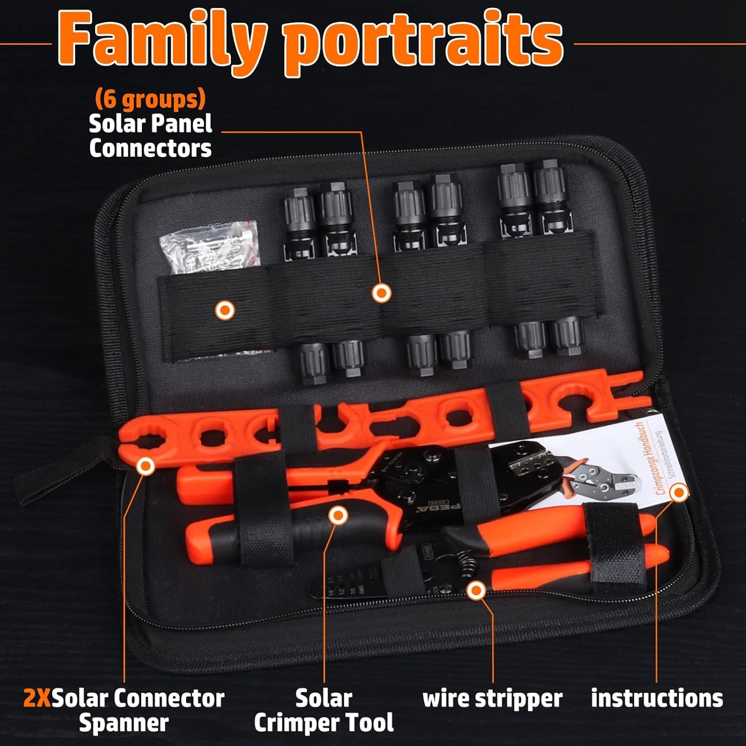 PEBA Solarstecker Crimpzange Set, Solar Crimpzange für 2.5/4/6mm² Solarpanel PV Solarkabel, mit 6 Pa
