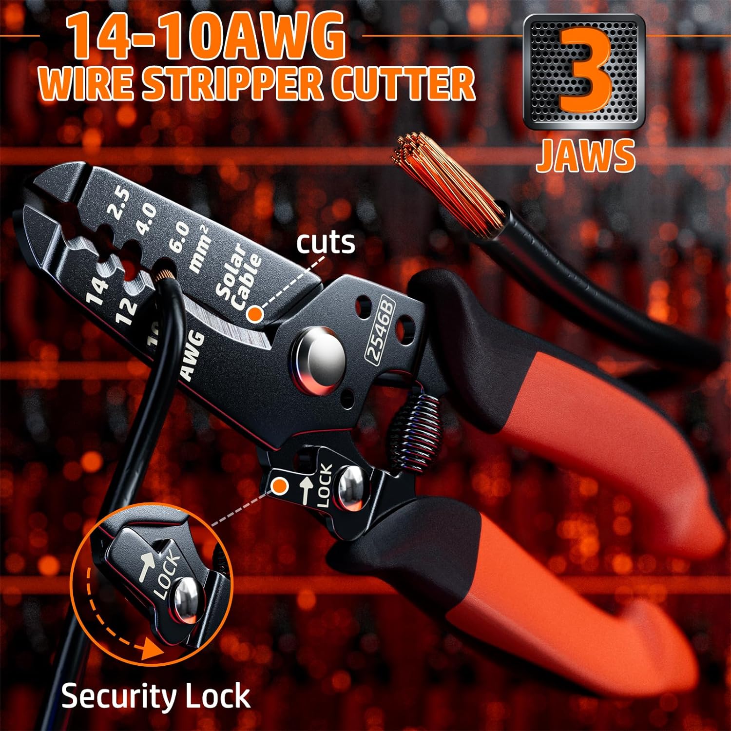 • Spezialisierte Abisolierzangen - Die Abisolierzange verfügt über eine ultrapräzise Abisolierbacke, die speziell für 2,5/4/6 mm² Solarkabel entwickelt wurde und die Unversehrtheit des Kupferkabels gewährleistet, ist sie einfach und mühelos zu