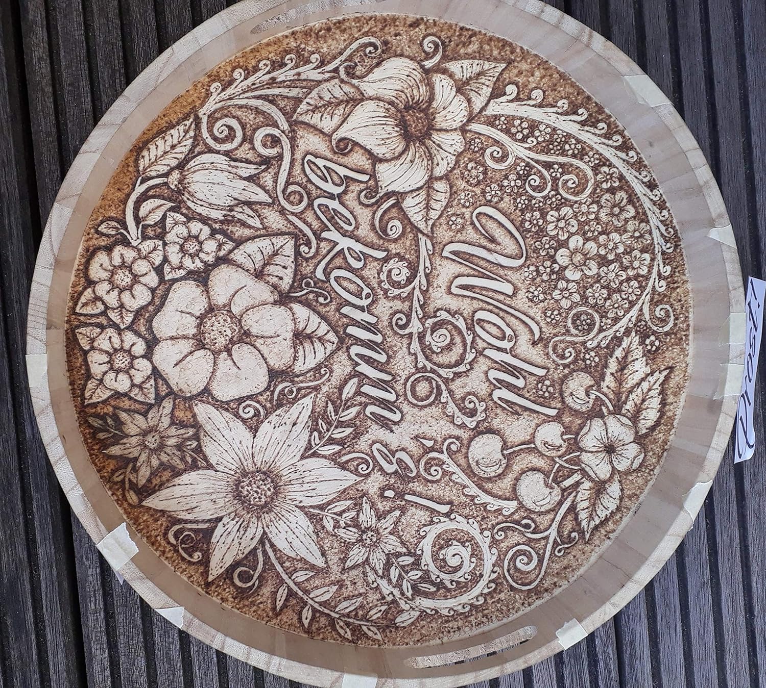 - ANWENDUNG: Individuelle Vorlage mit einem Bleistift vormalen. Linien mit dem Brandmalkolben nachzeichnen oder einen der vielen Brennstempel verwenden
