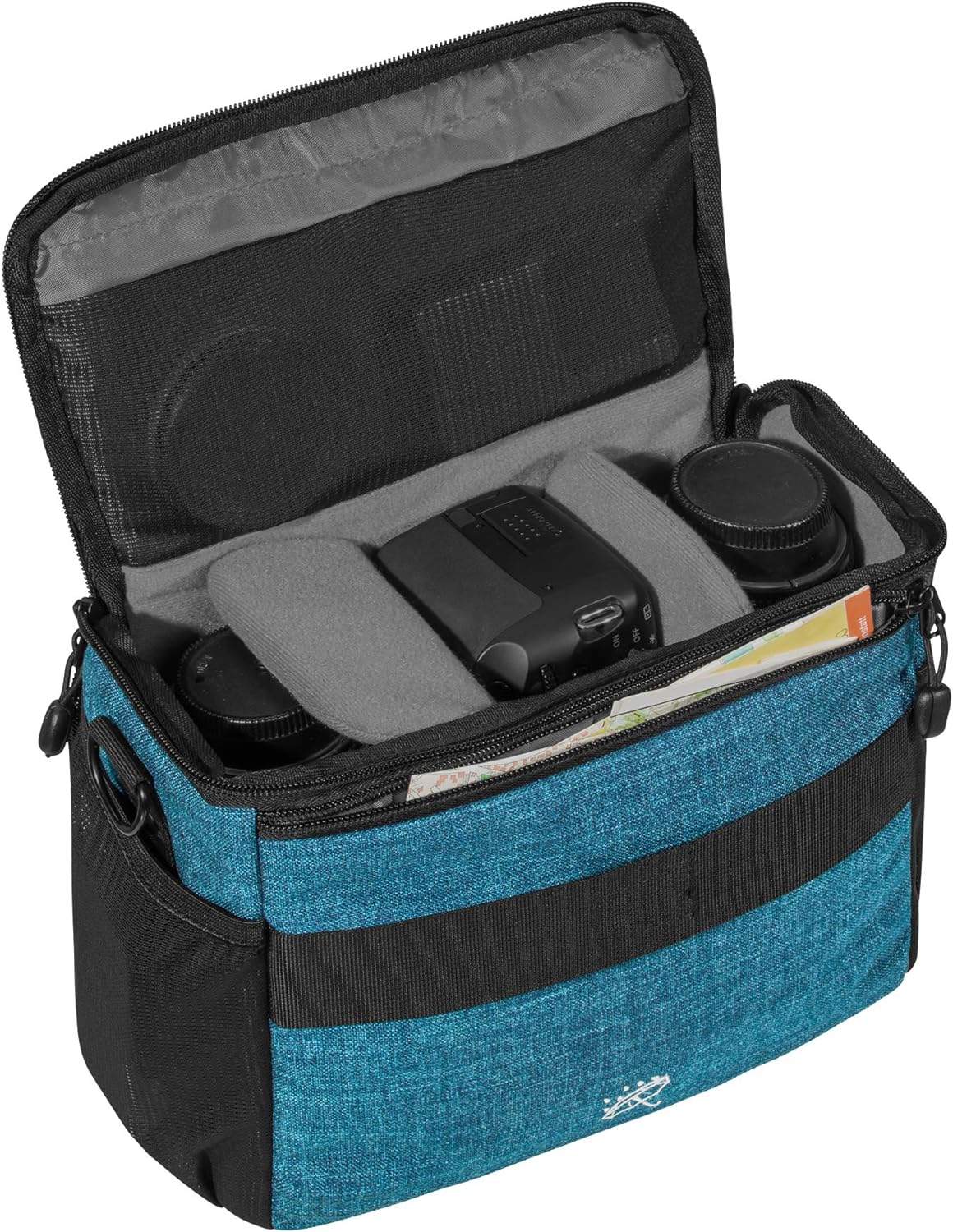 - Viel Stauraum für DSLR, Bridge- und Systemkameras mit kleinerem bis mittlerem Objektiv, Ersatzobjektiv, Datenkabel, Akku, Speicherkarte und anderes Zubehör