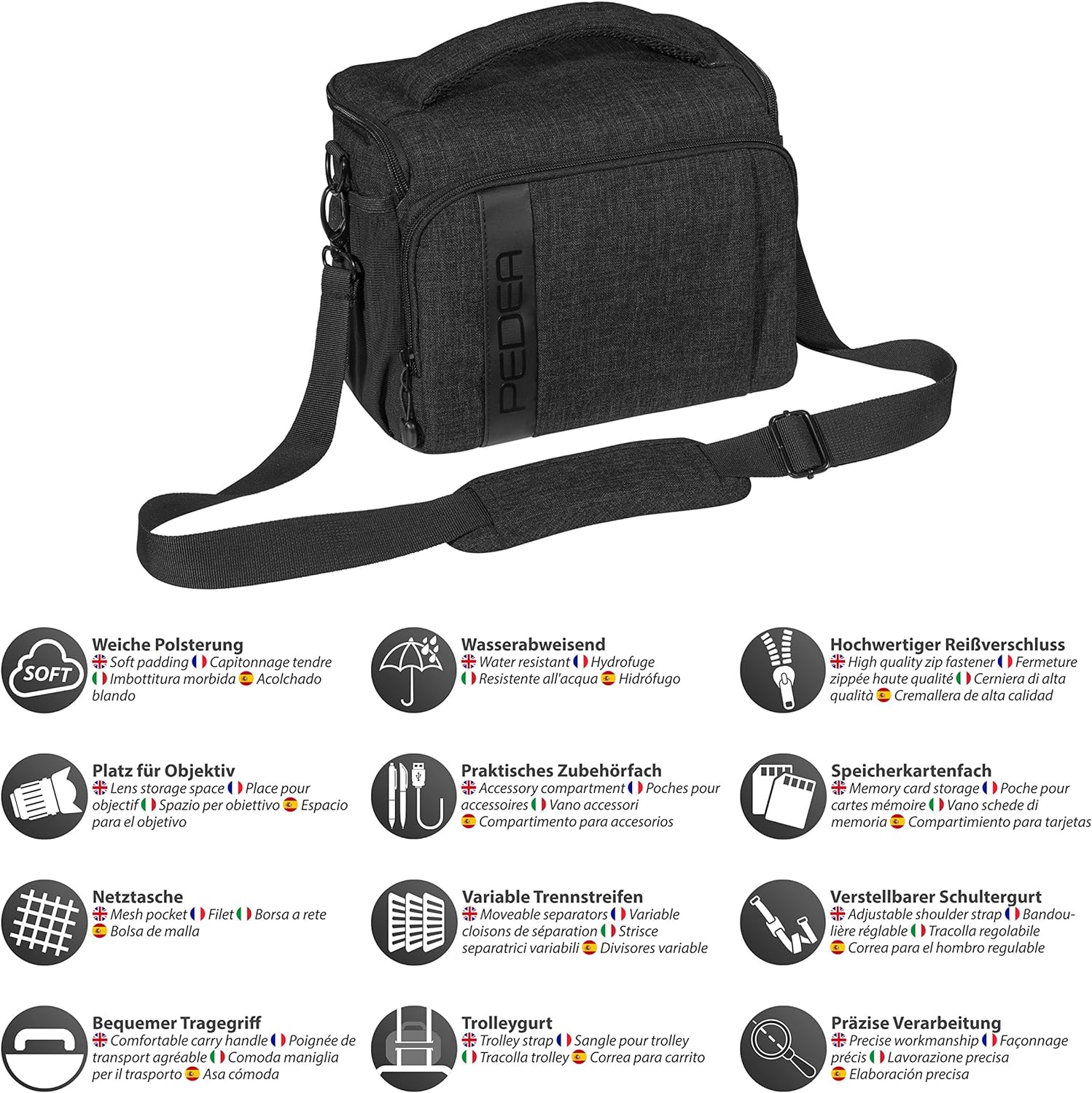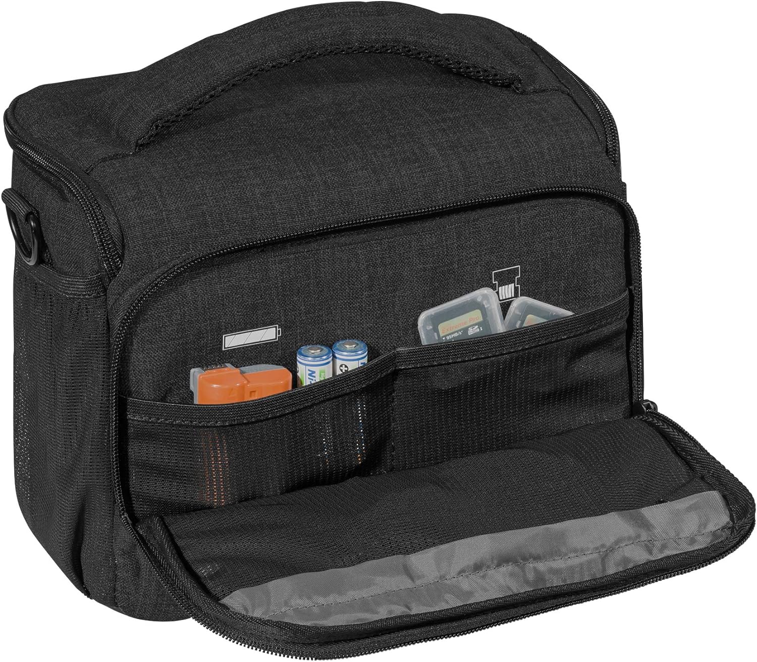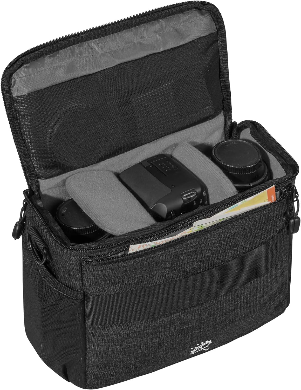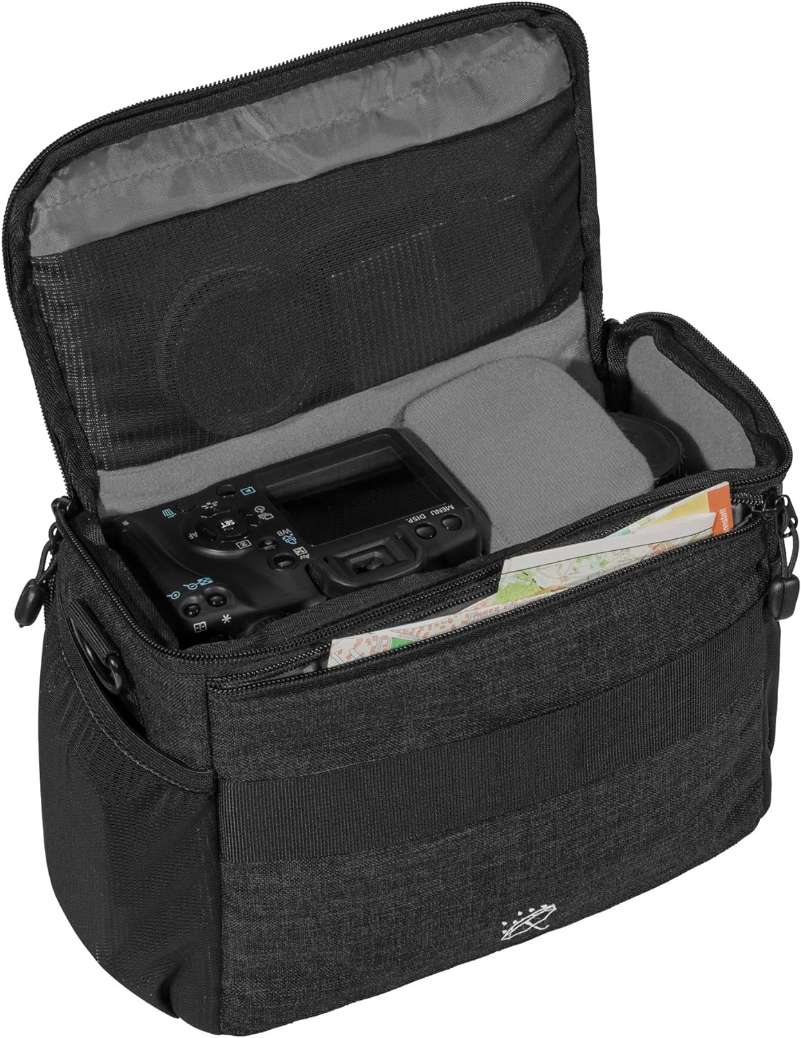 - Viel Stauraum für DSLR, Bridge- und Systemkameras mit kleinerem bis mittlerem Objektiv, Ersatzobjektiv, Datenkabel, Akku, Speicherkarte und anderes Zubehör