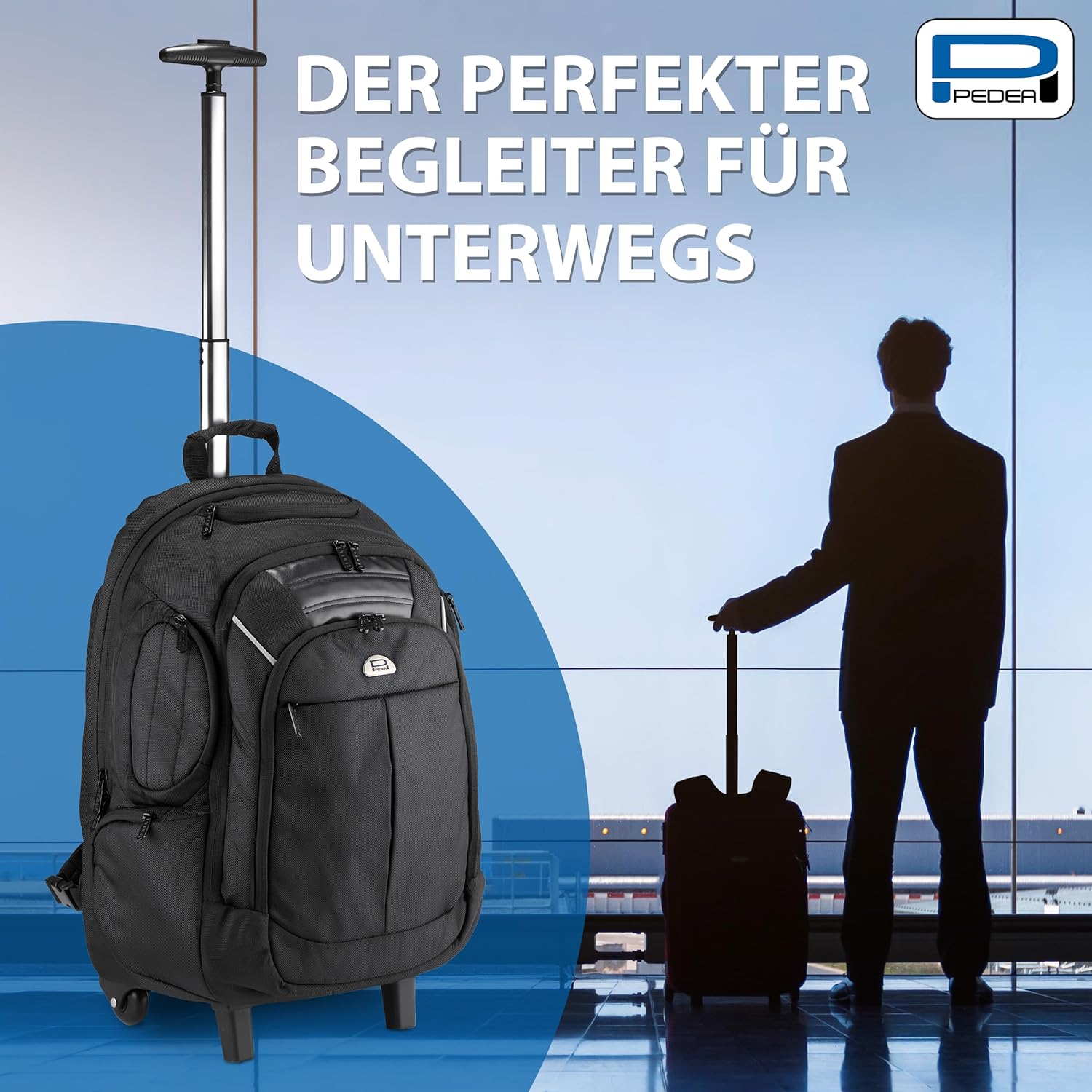 - BEQUEM UND PRAKTISCH: Die leichtgängigen Rollen, der ausziehbare Griff und die robuste Konstruktion machen diesen Trolley Rucksack zum zuverlässigen Begleiter auf all Ihren Reisen, sei es im Flugzeug oder in der Stadt.