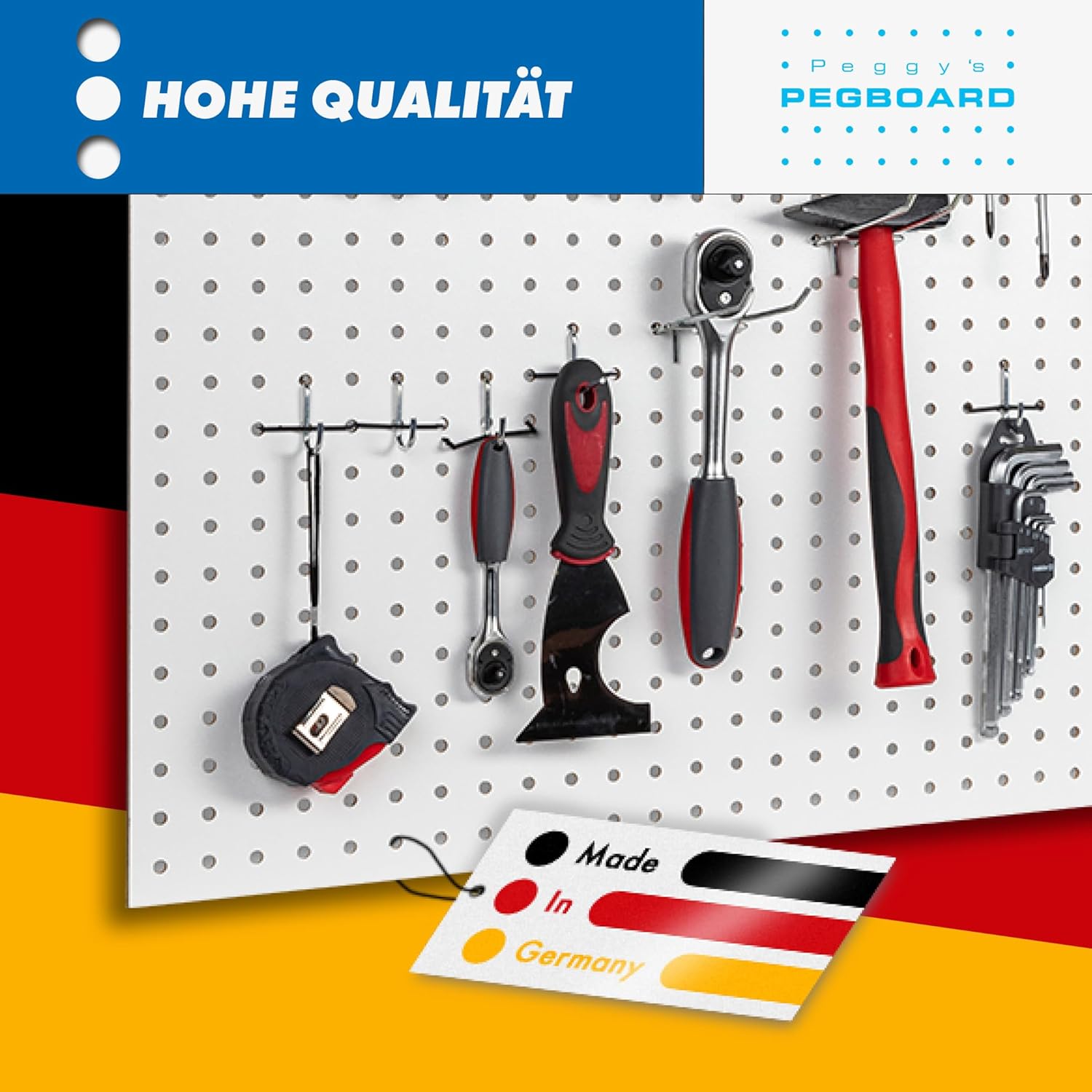 - Unsere Lochwände sind mit einer Stärke von 5 mm sehr stabil ausgelegt und Tests haben gezeigt, dass eher die Haken aus Metall sich verbiegen, bevor die Lochwand Schaden nimmt. | Auch für Nähgarn, Küchenutensilien oder Bastelutensilien geeignet