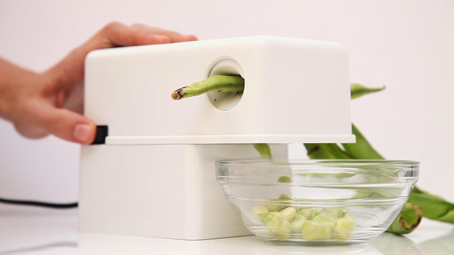 - Achtung: Für kleinere Erbsen oder Hülsenfrüchten, verwenden die robito Scheide Baby