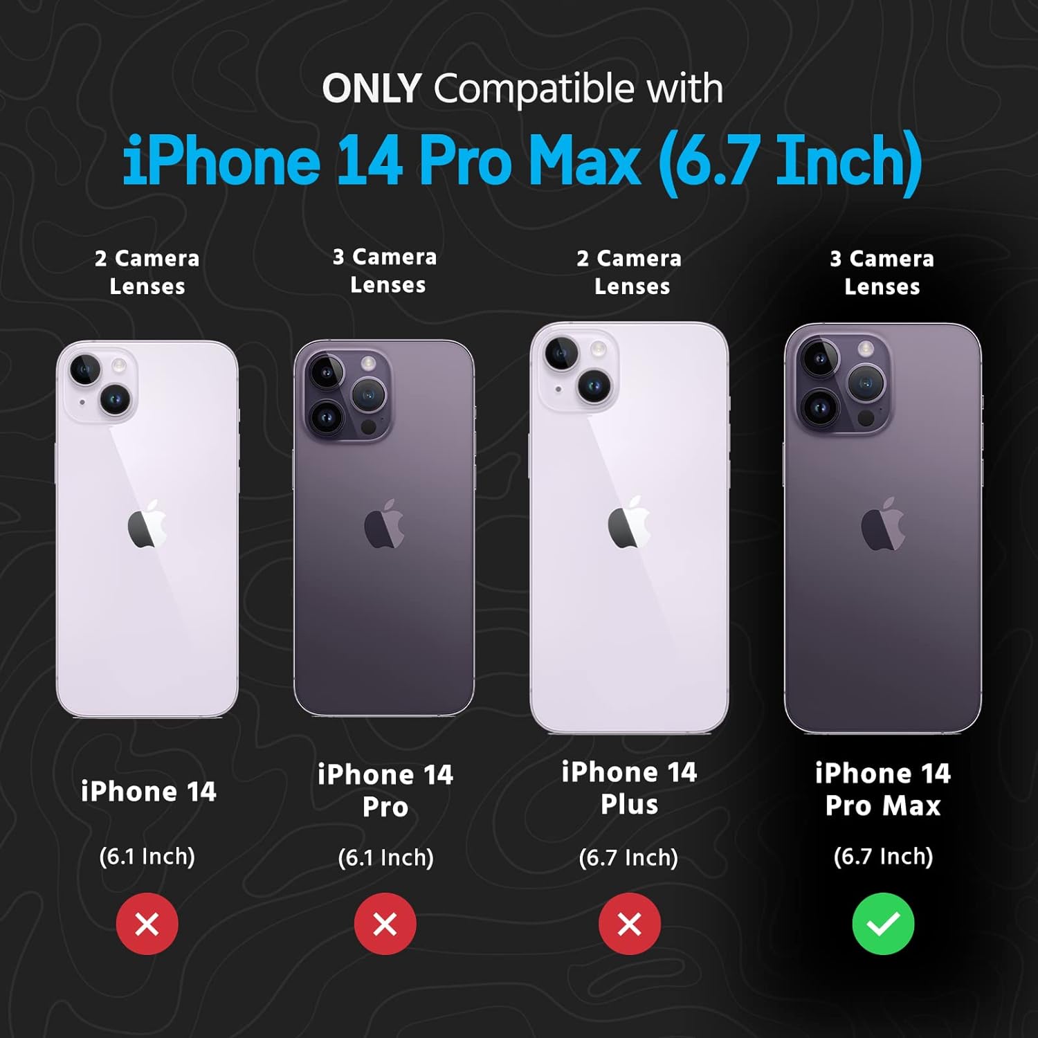 • Multifunktionales Design: Diese iPhone 14 Pro Max Hülle enthält ein Holster, das ein stabiles Verriegelungssystem bietet, das es ermöglicht, Ihr iPhone leicht zu tragen, sowie einen Ständer, der das Ansehen von Videos oder Filmen im Querformat