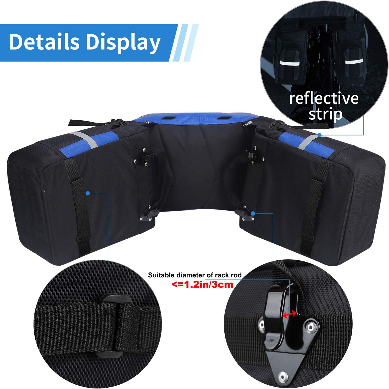 - ★Fahrradpacktaschen: wird maschinell genäht und wiederholt betätigt. Der Rucksack wird einer tatsächlichen Schwerkrafterkennung unterzogen und kann eine 50lb Last tragen, um sicher zu fahren. Die Seitentaschen verfügen über zwei Montagehaken, die