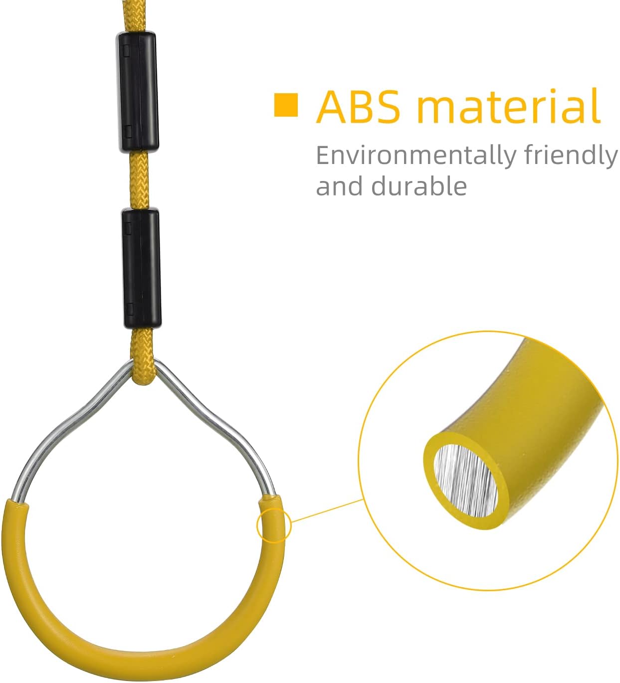 - 👐Ein einzelner Ring kann 120 kg tragen, bestehend aus Polyester, Eisenring und ABS-Griff, stark und langlebig, einfach auf dem Spielplatz im Innen- oder Innenhof zu installieren.
