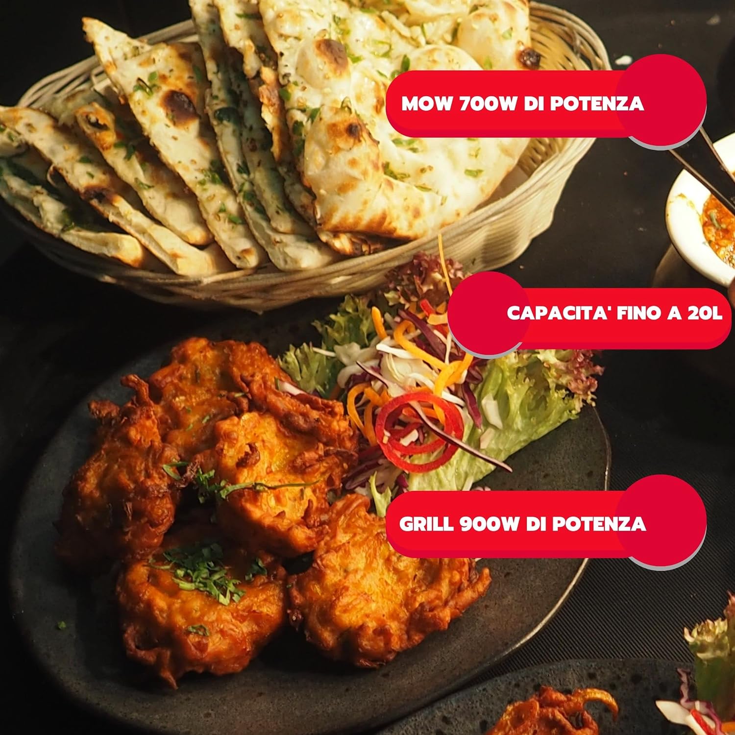 • LEISTUNG UND TIMER - Der kleine kompakte und einfache Mikrowellenherd besitzt eine Leistung von 700W und von 900W mit Grillfunktion. Dank der verschiedenen Leistungsstufen ist es möglich, alle verfügbaren Garfunktionen zu nutzen