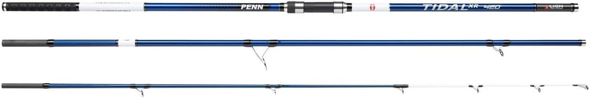 PRODUKTBESCHREIBUNGEN Die PENN Tidal XR ist Teil des neuen und exklusiven Tidal Surfcasting Konzepts von PENN. Die Tidal XRs sind mit den besten SW-beständigen Fuji Alconite K-Ringen ausgestattet, um maximale Wurfweite zu gewährleisten und zu verhindern, dass sich die Schnur um die Ringe verheddert. Alle Blanks sind mit einer Mischung aus hochmoduligem 30/40T Carbon gebaut, um einen leichten, reaktionsschnellen und sehr schlanken Blank zu gewährleisten. Daneben sorgt die spezielle Carbon X-Wrap Technologie für zusätzliche Festigkeit und verminderte Verdrehung, was die Wurfgenauigkeit und Kontrolle verbessert. Die stark leuchtende Farbe macht es auch bei schlechten Lichtverhältnissen einfach, Bisse zu erkennen. Ausserdem sind alle Blanks mit einem speziellen X-Shrink Wurfgriff ausgestattet, der maximale Kontrolle beim Wurf ermöglicht. Es sind 6 Versionen mit Sensitips erhältlich. Die Metallic-Grün (100-225g) und Metallic-Blau (100-250g) sind echte Allround-Brandungsruten, die unter allen Bedingungen eingesetzt werden können. Wenn es jedoch nur auf Distanz und Power ankommt, sind die metallic-roten Versionen (100-300g) genau das Richtige für Sie.