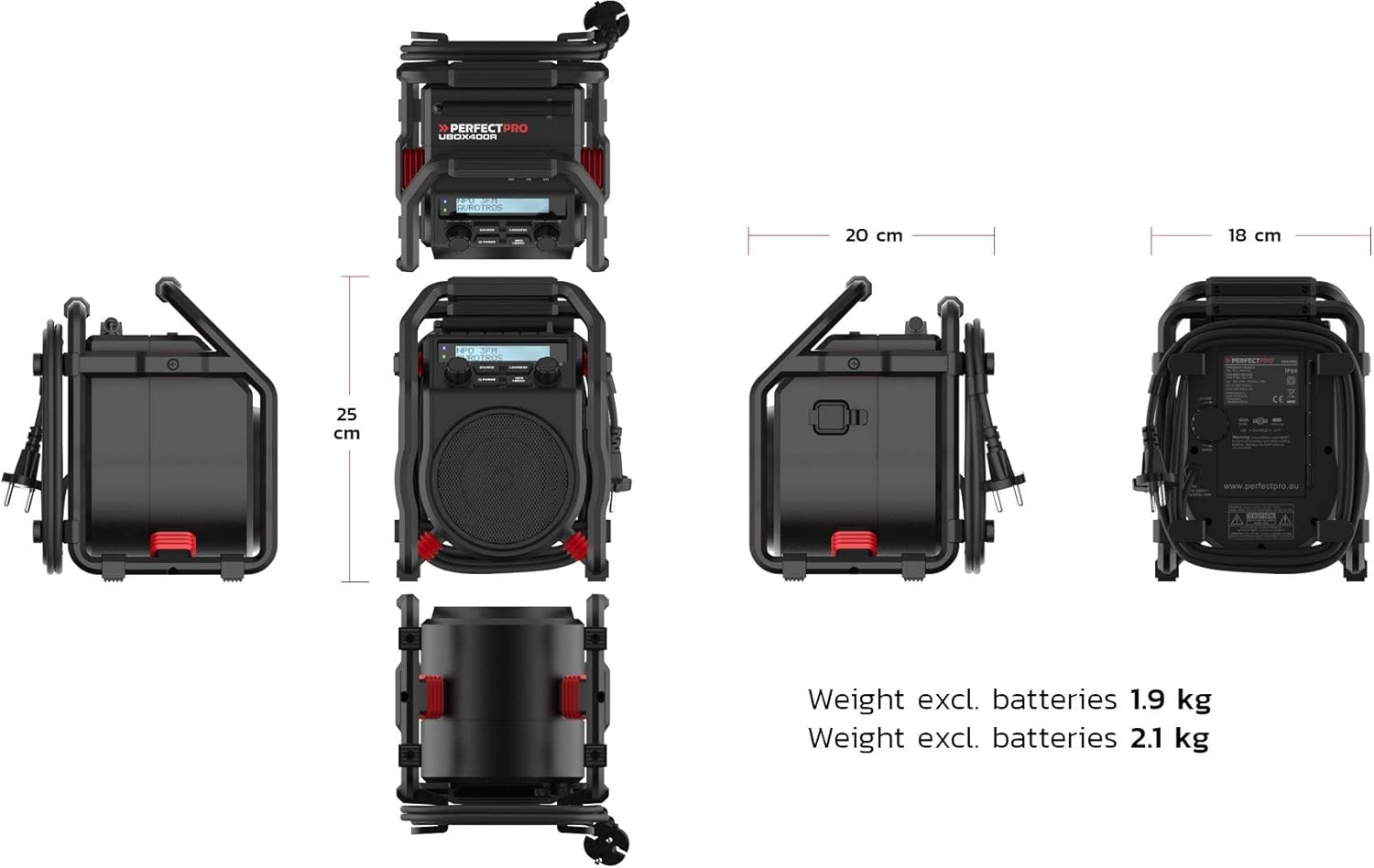 - PerfectPro UBOX400R Baustellenradio DAB+, UKW Bluetooth, AUX, DAB+, UKW stossfest Schwarz