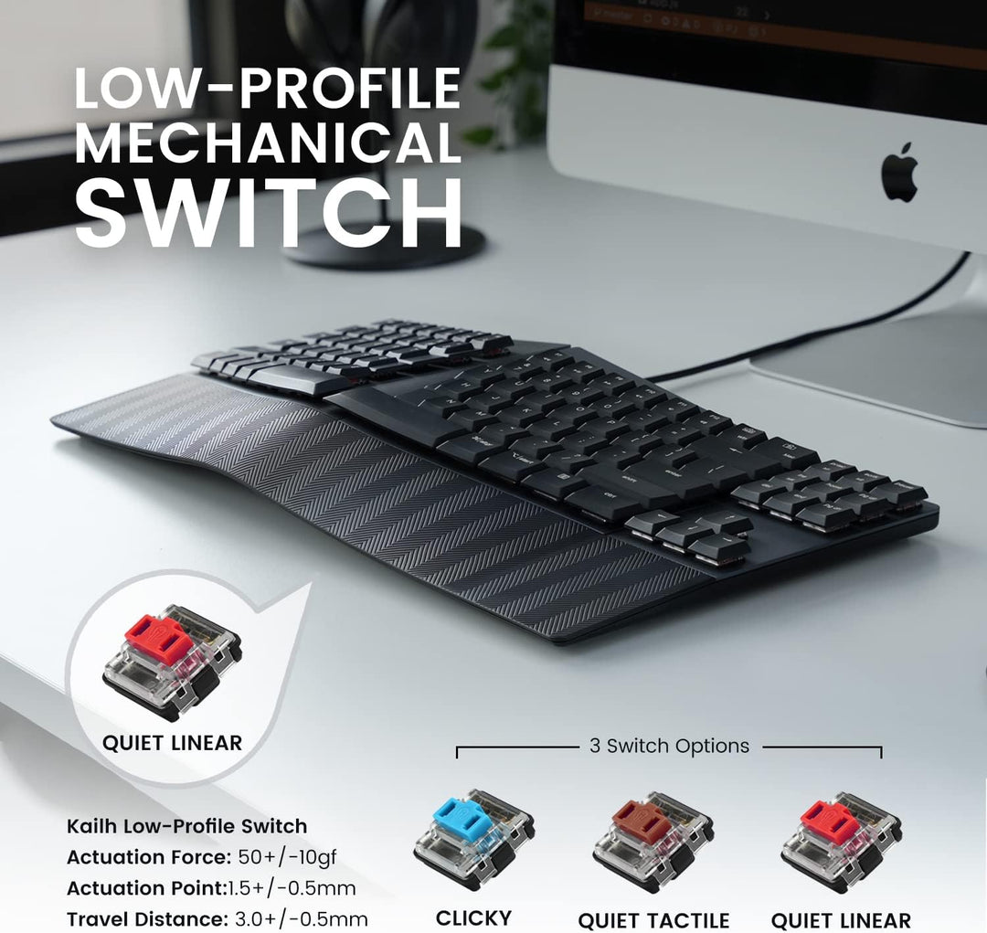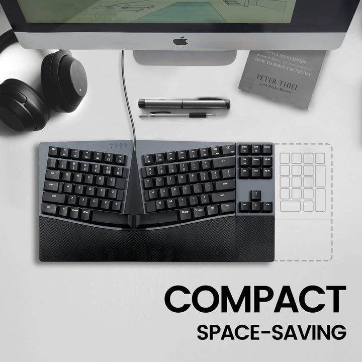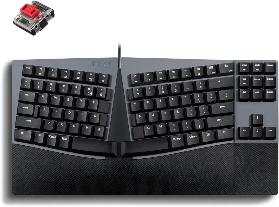 - Kompakte Tastatur mit ergonomischem Design: Die kompakte zehn-Tastenlose Tastatur mit geteiltem Tasten-Design und gebogenem Rahmen fördern eine bessere Haltung, indem das Handgelenk und die Arme in der natürlichsten Schreibhaltung positioniert werden