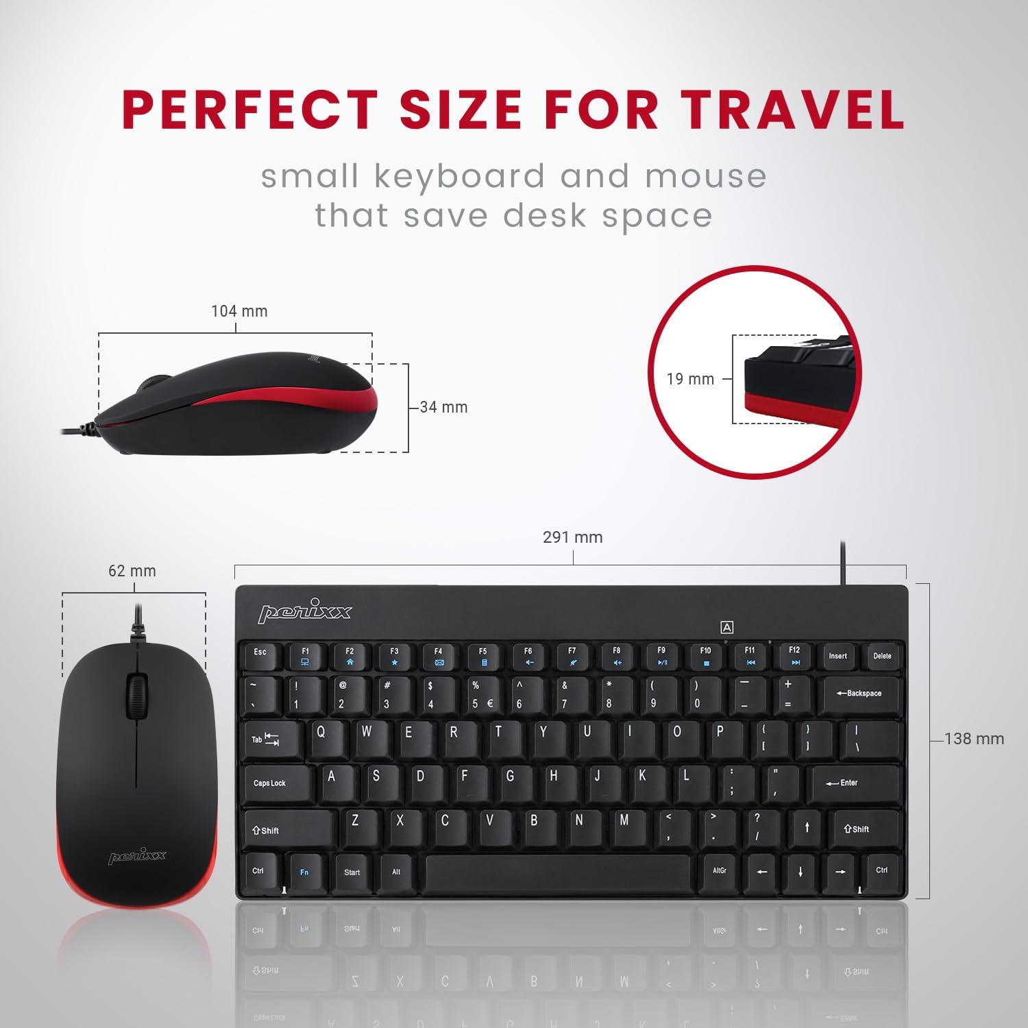 - Periduo-212 ist ein Mini-Tastatur- und Maus-Set. Masse der Tastatur: 291 x 138 x 19 mm. Masse der Maus: 104 x 62 x 34 mm