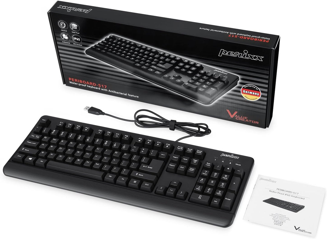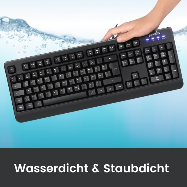 • WASSERDICHT UND STAUBDICHT: Klassisches Vollformat Tastatur mit SGS zertifiziertem IP 65; Keine Gefahr bei Wasserspritzern