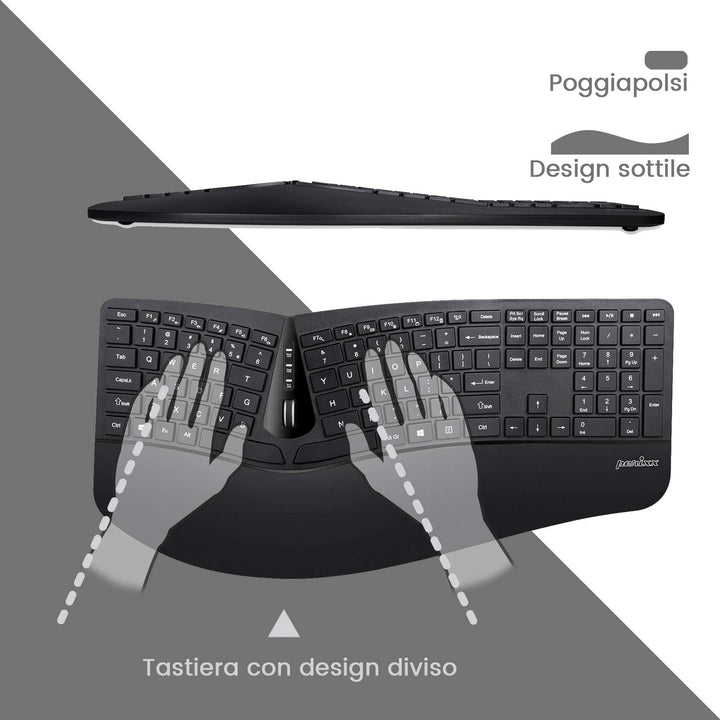 - Ergonomische 3D-Tastatur mit geteiltem Design mit 12 Multimedia-Funktionen und Schnellwahltasten mit zusätzlichem Scrollrad in 4 Richtungen neigbar.