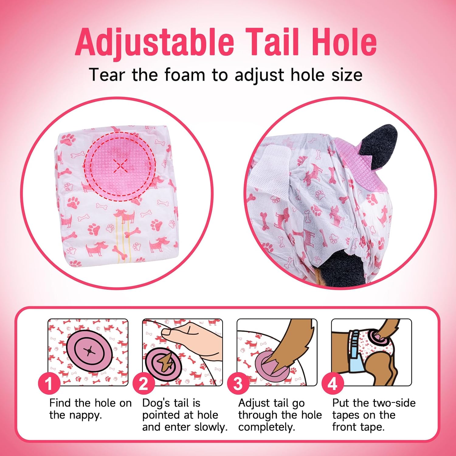 - 【🐶Mit Verstellbarem Schwanzloch】Modemuster windeln für Hündinnen mit verstellbarem Schaumstoffloch, es ist bequem für Sie, das Loch an die Grösse des Schwanzes Ihres Haustieres anzupassen, die Hundewindeln können den Kot oder Durchfall