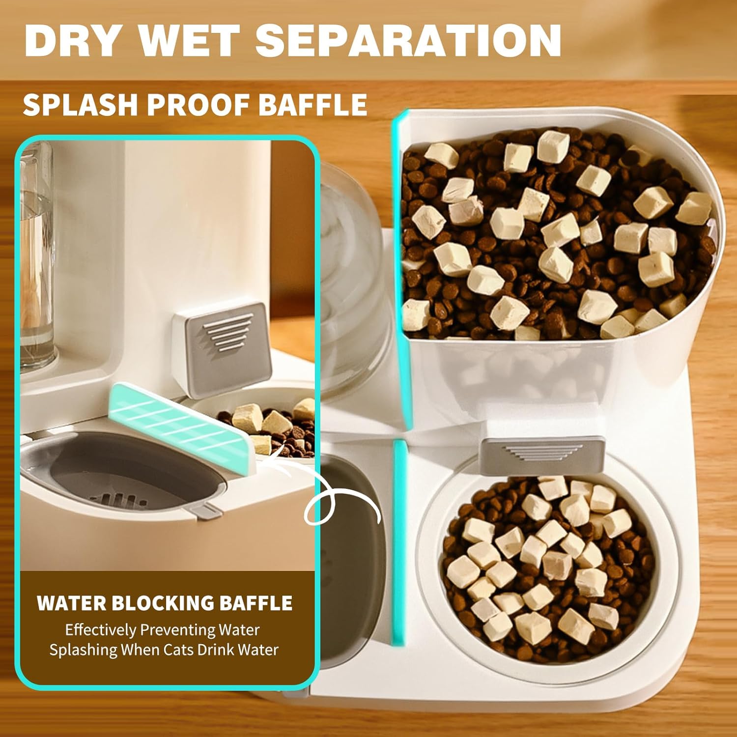 - 【Grosse Kapazität】Katzenfutterspender kann 2,2L Trockenfutter und 1L Wasser fassen, die Wasserflasche verwendet das Schwerkraft-Siphon-Prinzip und das Wasser stoppt automatisch, wenn es eine bestimmte Stelle erreicht.Feeder Auslauf 45 ° Neigung,
