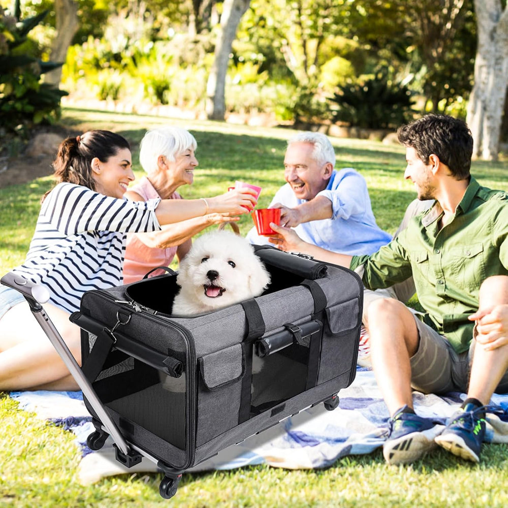 - 【Hundetransporttasche mit Rädern】Der 4-Rad-Roller mit 360°-Drehung sorgt für eine sanfte und leise Fahrt auf jeder Oberfläche, während der 3-stufige Teleskop-Druckknopfgriff, der fest einrastet, um Ihnen ultimative Kontrolle und Komfort zu