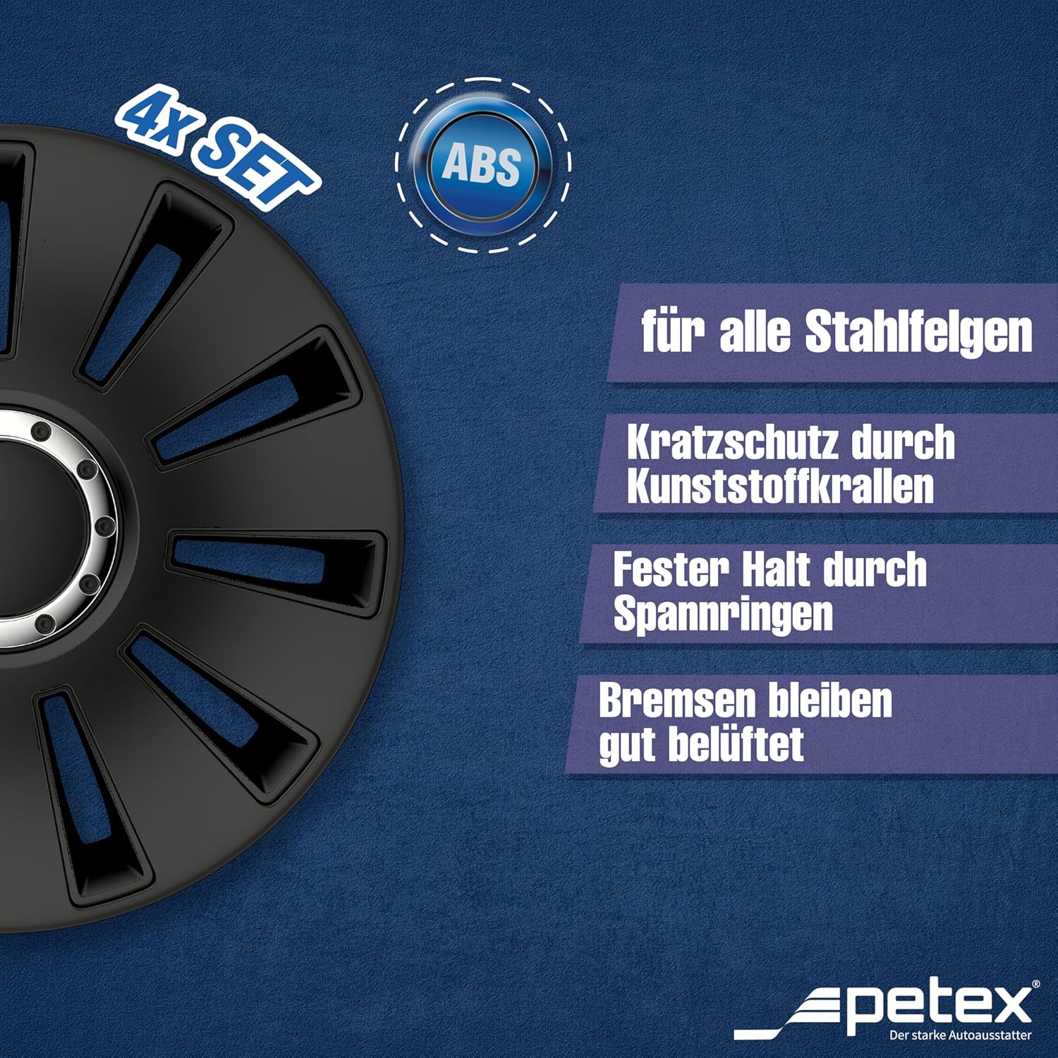PETEX 531616 Radzierblenden / Radkappen Silverstone Pro Black 16 Zoll, 16 Zoll