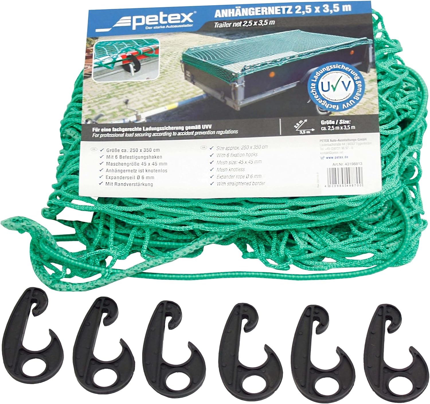 - Anhängernetz: 2,5 x 3,5 m in grün