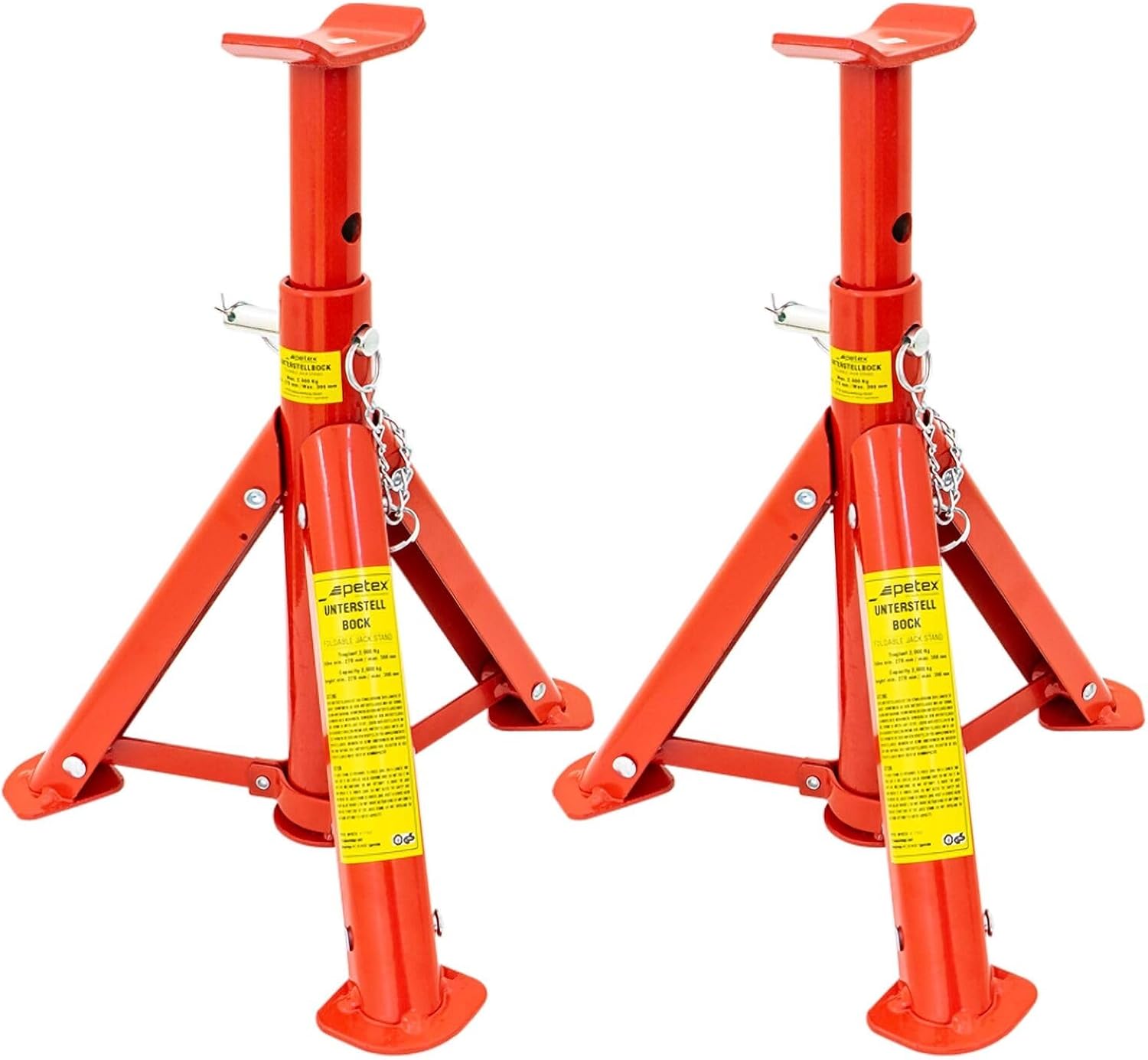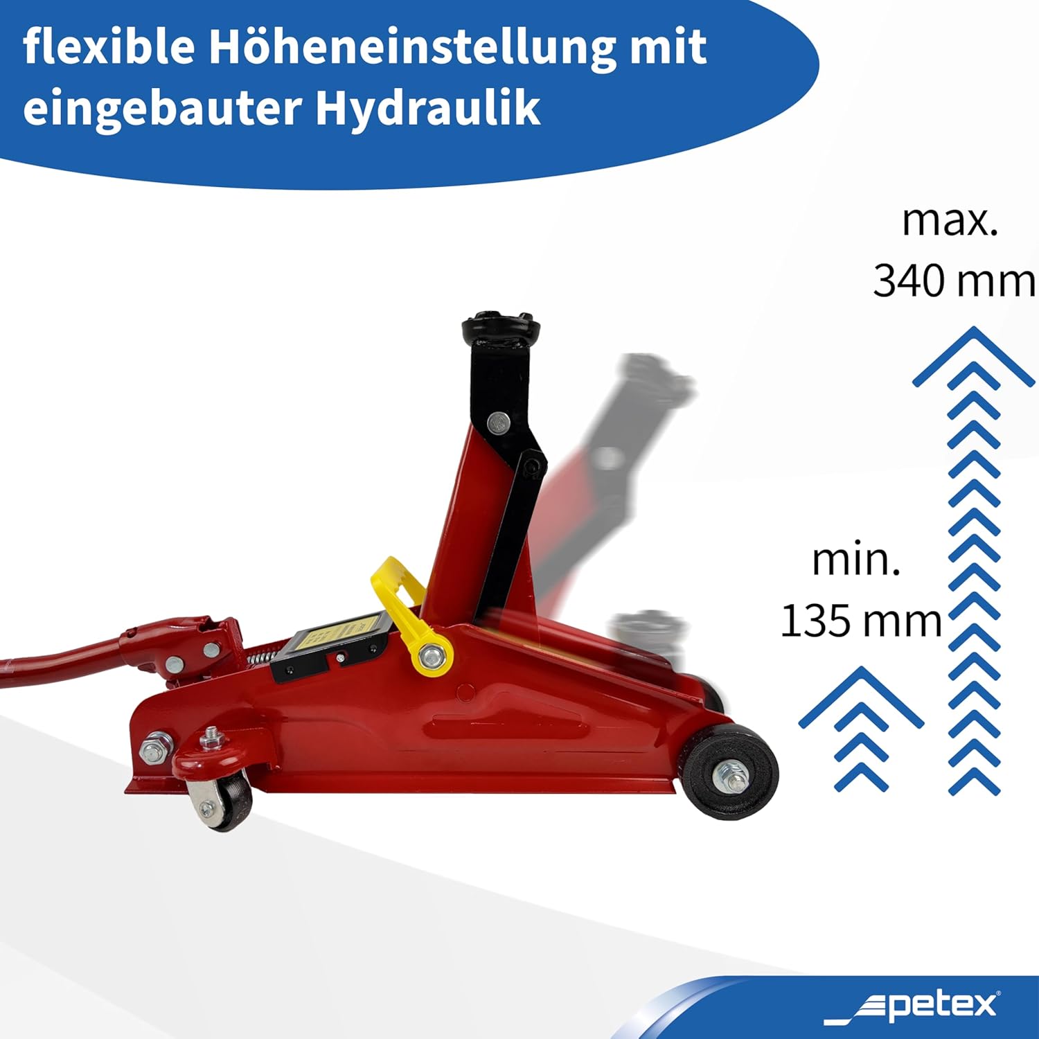 PETEX Rangierwagenheber, 2 T, hydraulisch + 2X Unterstellböcke, höhenverstellbar und faltbar, 2 T, r