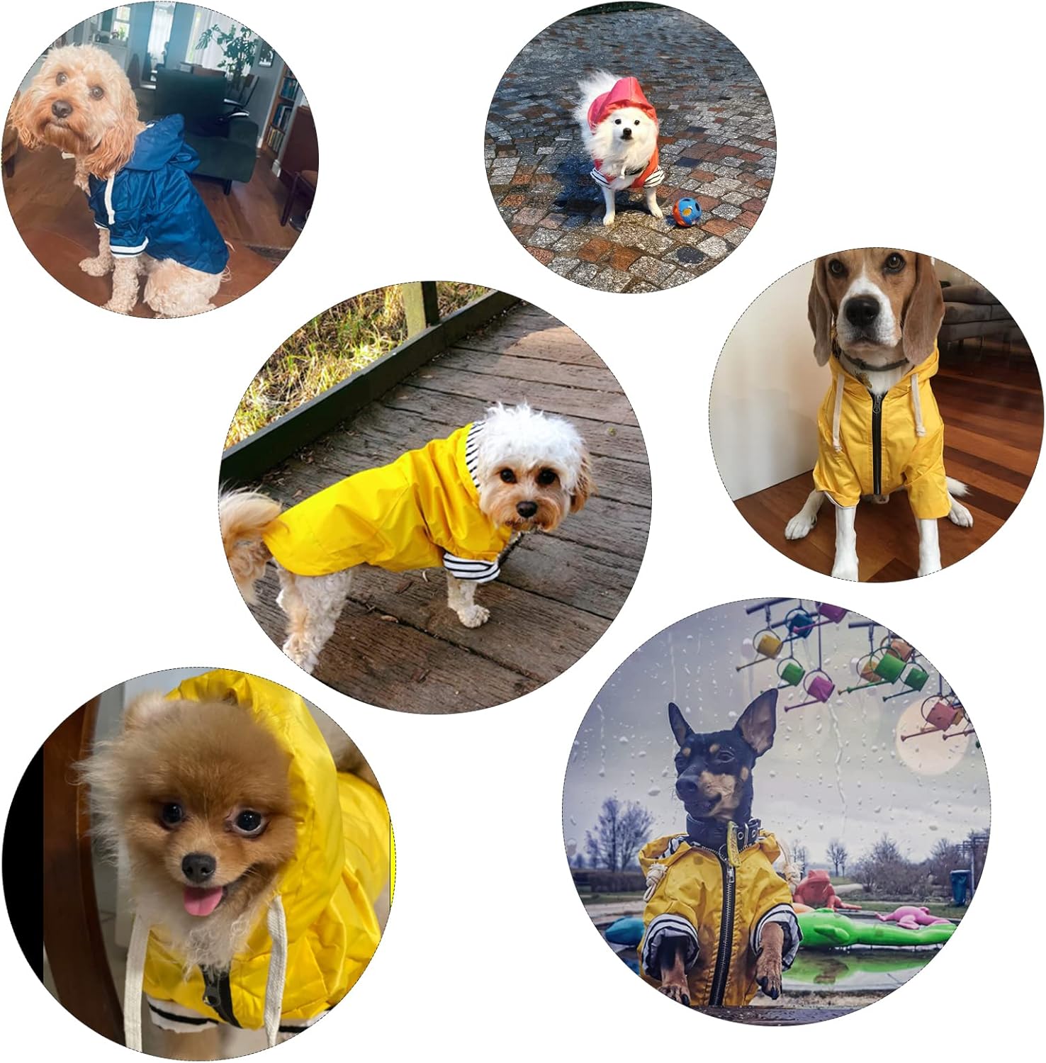 - 5. Hunderegenmantel mit geschirr loch: Enthält eine kleine Öffnung auf der oberen Rückseite der Regenjacke für Benutzer von Geschirr. Verstellbar für jede Hunderasse.