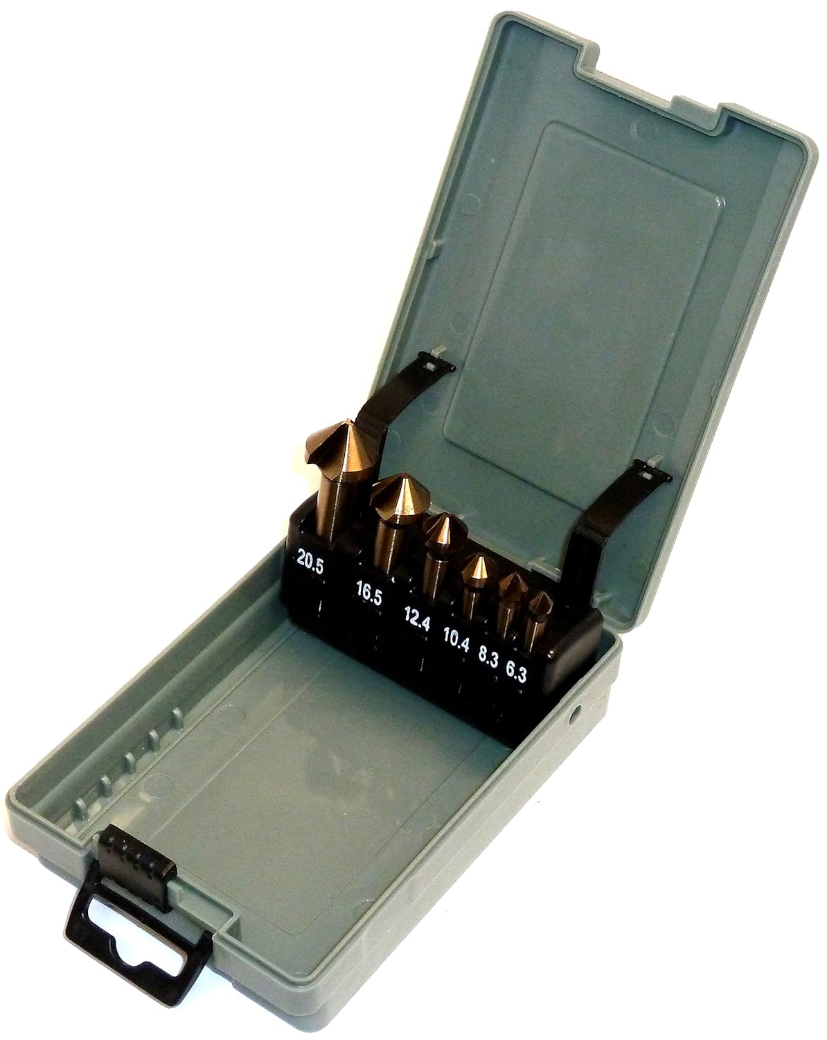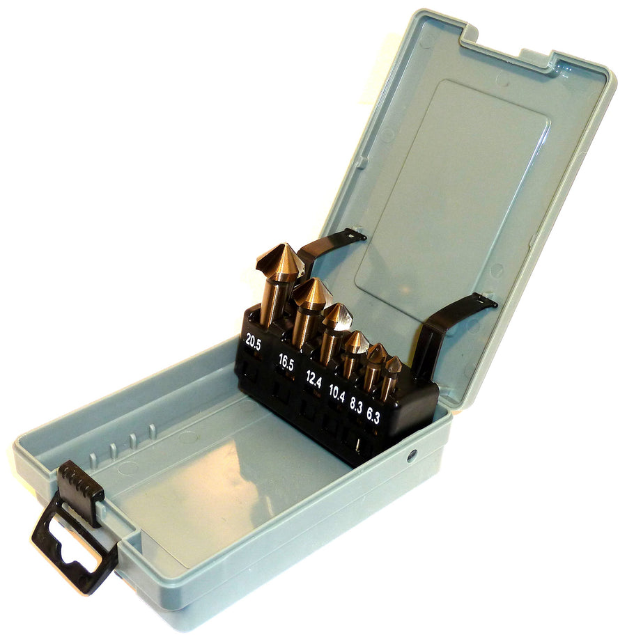 - Inhalt: je 1 Senker mit Kopfdurchmesser: 6,3mm, 8,3mm, 10,4mm, 12,4mm, 16,5mm, 20,5mm