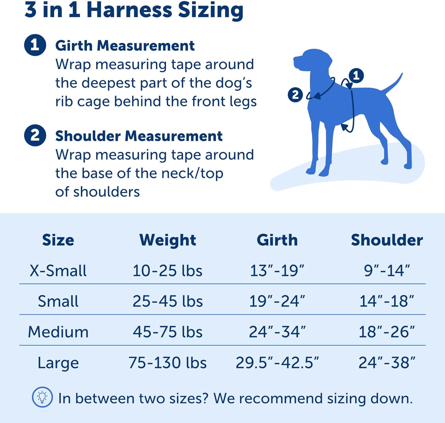 - Verstellbare Passform: Mit 5 Einstellpunkten können Sie mit dem PetSafe 3-in-1-Geschirr eine individuelle Passform für Ihren Hund schaffen; praktische Tags helfen Ihnen, sich daran zu erinnern, wo jeder Gurt passt: Schultern, mittiger Brust oder Umfang
