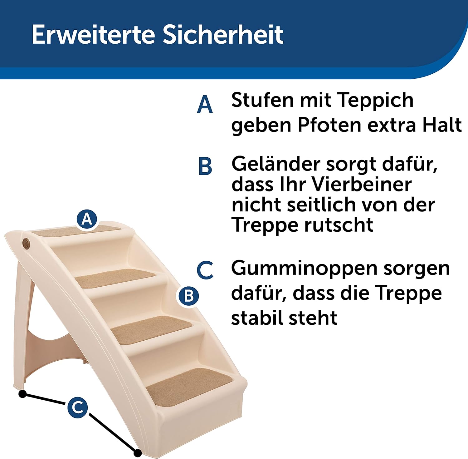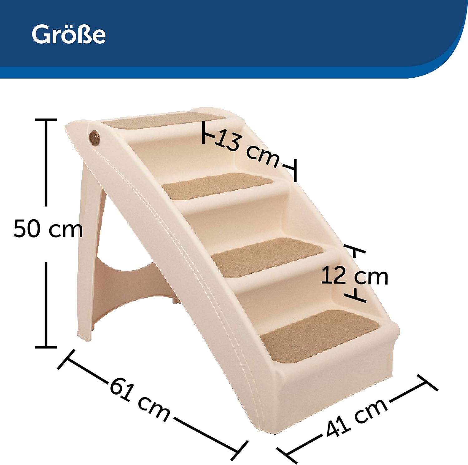 - ROBUSTES DESIGN: Die aus strapazierfähigem, stabilem Kunststoff gefertigte Hunderampe eignet sich für Haustiere bis 68 kg und wiegt nur 2,3 kg. Der Teppich auf den Stufen gibt Pfoten guten Halt