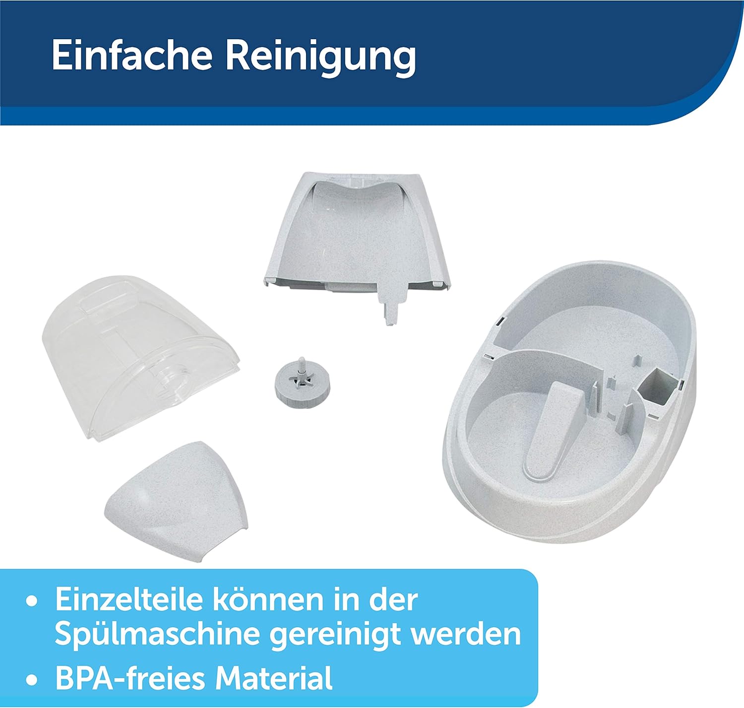 - EINFACHE REINIGUNG: BPA-frei (mit Ausnahme der Pumpe), nur der Springbrunnen kann für eine sehr einfache Reinigung in den oberen Fach des Geschirrspülers gestellt werden