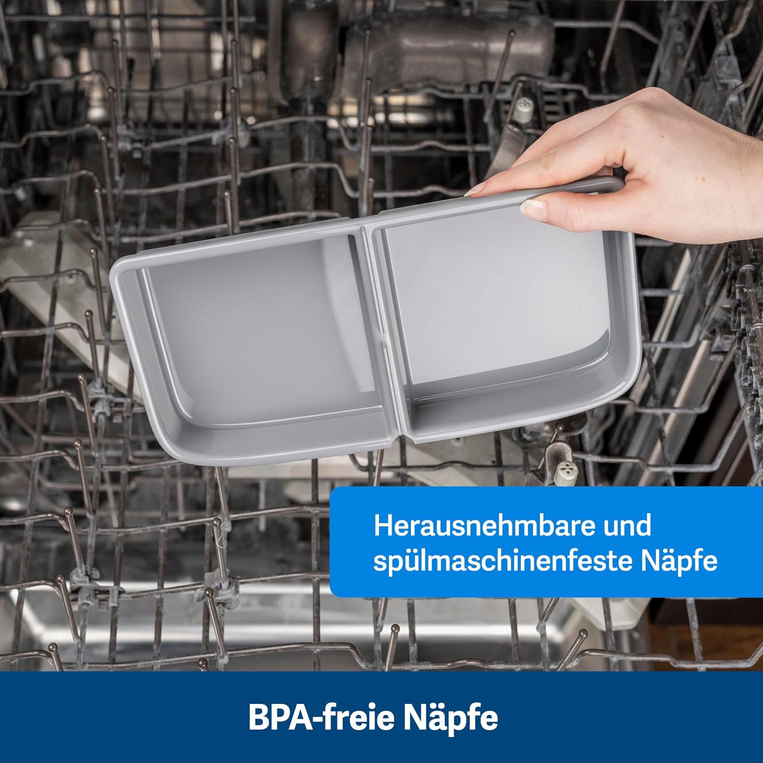 - EINFACH ZU REINIGEN:Das herausnehmbare, BPA-freie Futternapf Fach kann einfach im oberen Fach des Geschirrspülers gereinigt werden.Die Farbe kann zwischen grau und hellgrau variieren