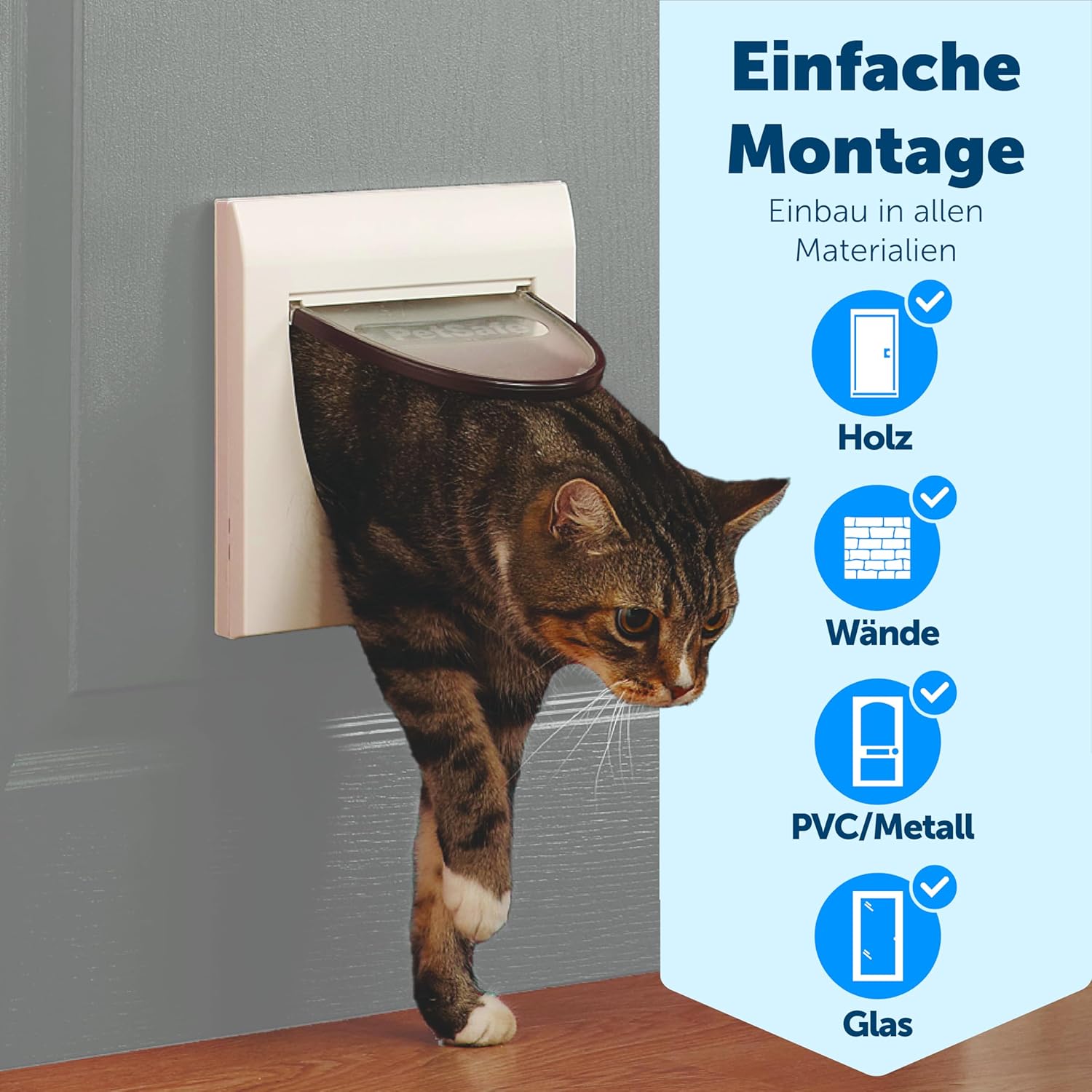 • EINBAU: Diese Katzenklappe ist für Glas, Holz, Wände, Metall und PVC geeignet. Sie wird mit einem fest angebrachtem Montagetunnel geliefert. Die Schneideschablone und Anleitung vereinfachen den Einbau