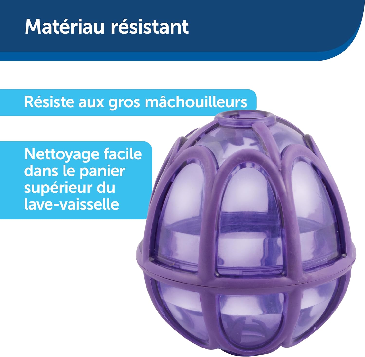 - Einfach zu verwenden – Zum Befüllen die beiden Hälften auseinanderschrauben, in eine Hälfte Futter geben und den Ball wieder zusammenschrauben