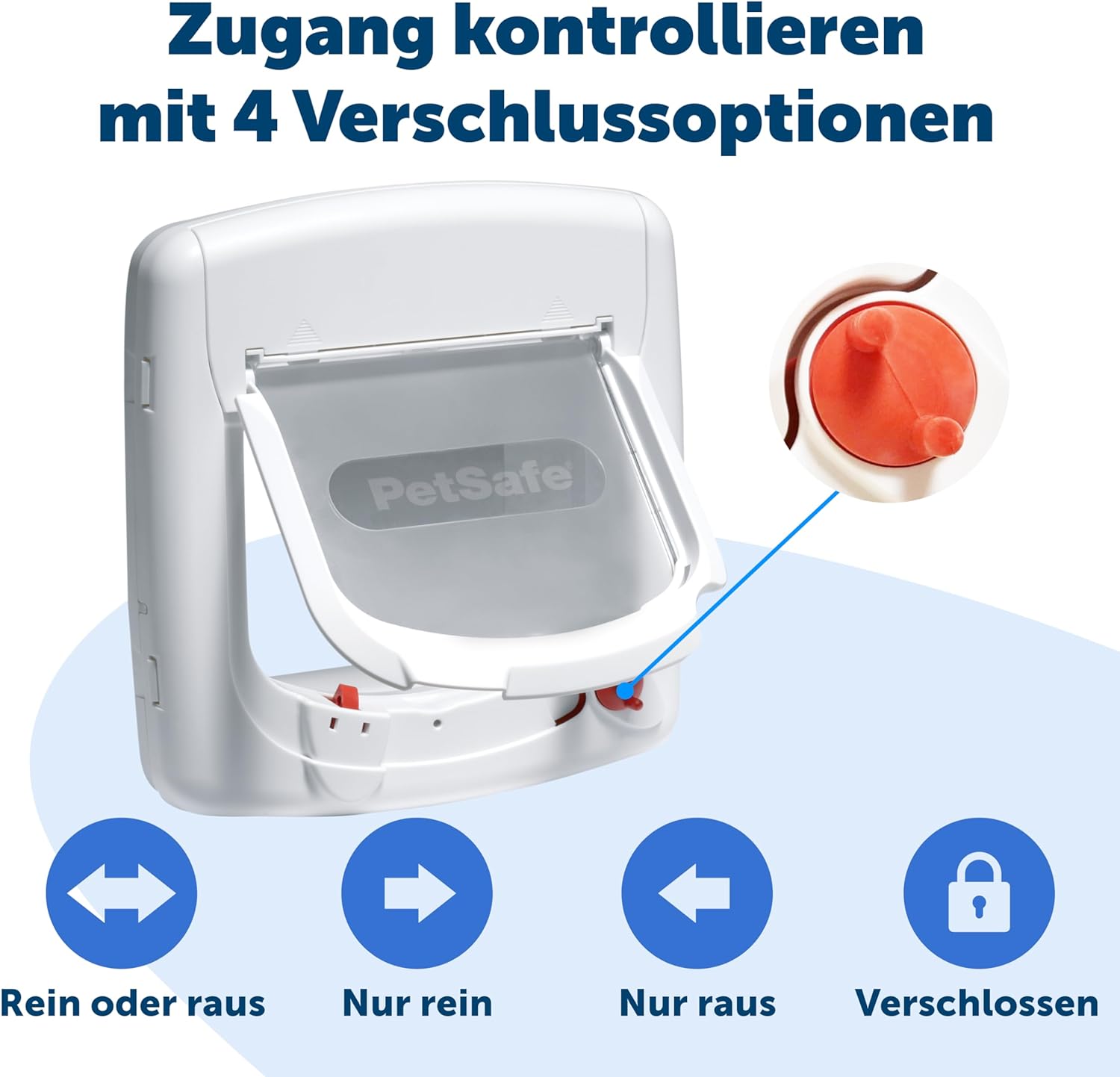 - 4 MANUELLE VERSCHLUSSOPTIONEN: Mit dem roten Drehknopf können Sie zwischen 4 Verschlussoptionen wählen - Nur rein, nur raus, beidseitig offen oder komplett verschlossen.
