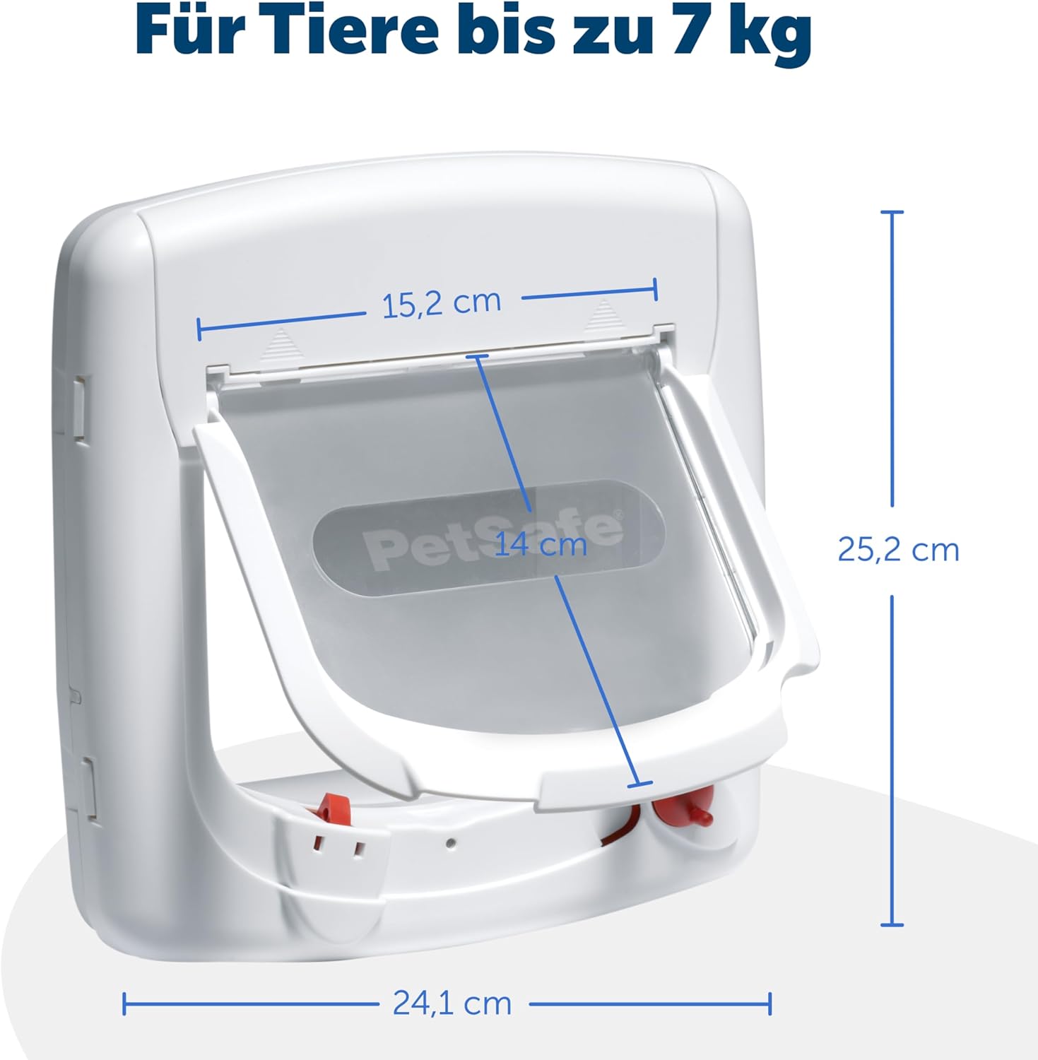 - MAssE: Die Masse der Katzenklappe sind 24,1 x 25,2 cm. Die Klappenöffnung ist BxH 15,2 x 14 cm und für Haustiere bis 7 kg mit einer max. Schulterbreite von 15 cm geeignet.