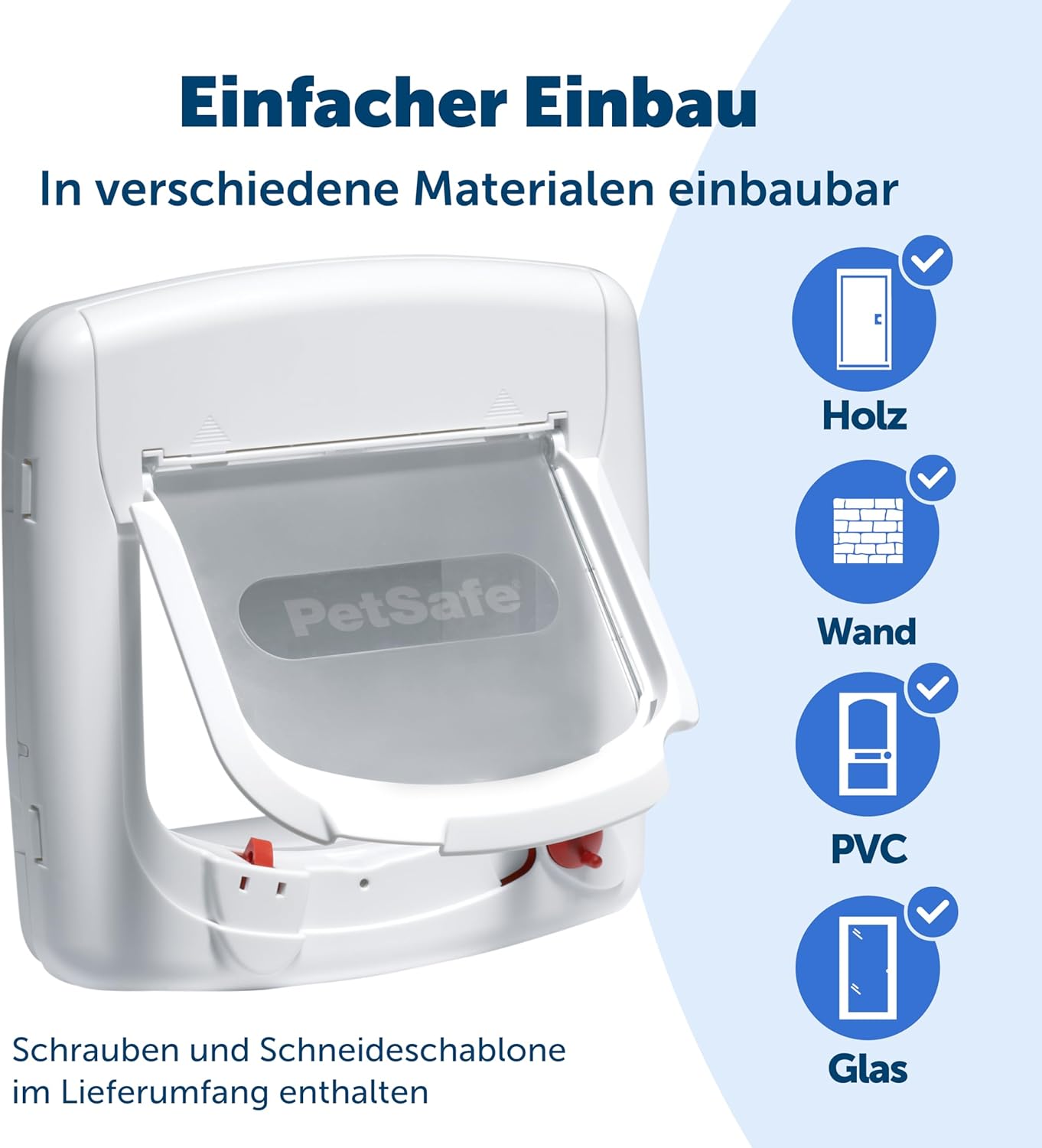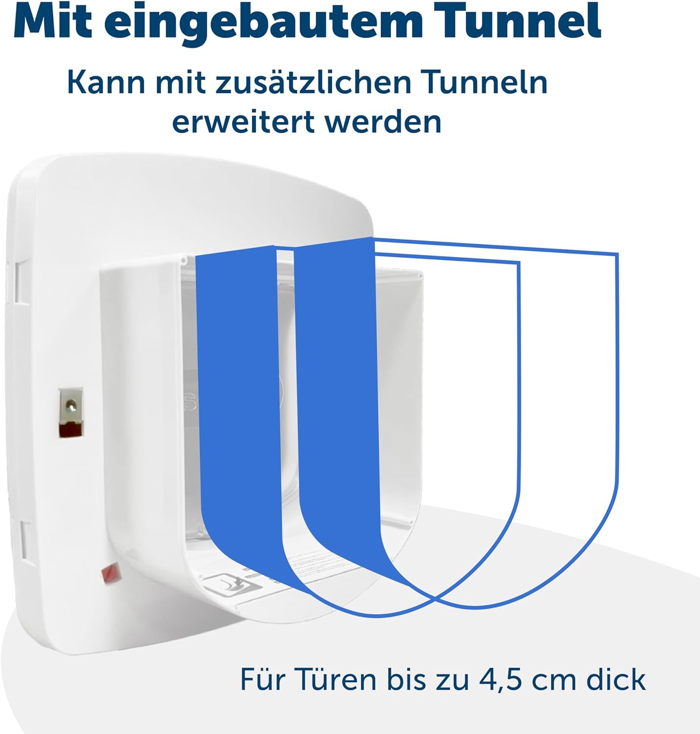 - EINFACHER EINBAU: Diese Katzenklappe mit eingebautem Tunnel kann in Türen und Wände (Holz, Glas, Metall, PVC und Ziegel) bis zu 4,5 cm dick eingebaut und mit zusätzlichen Tunneln erweitert werden.