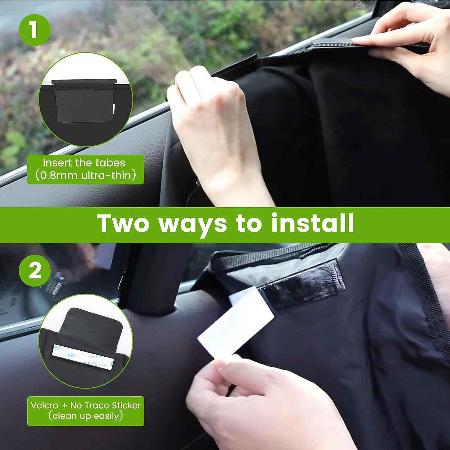 • 🚗 Zwei Installationsmethoden: 1. Kleben Sie die Laschen zwischen das Autofenster und die Autotür. 2. Verwenden Sie den Klettstreifen auf der Rückseite.