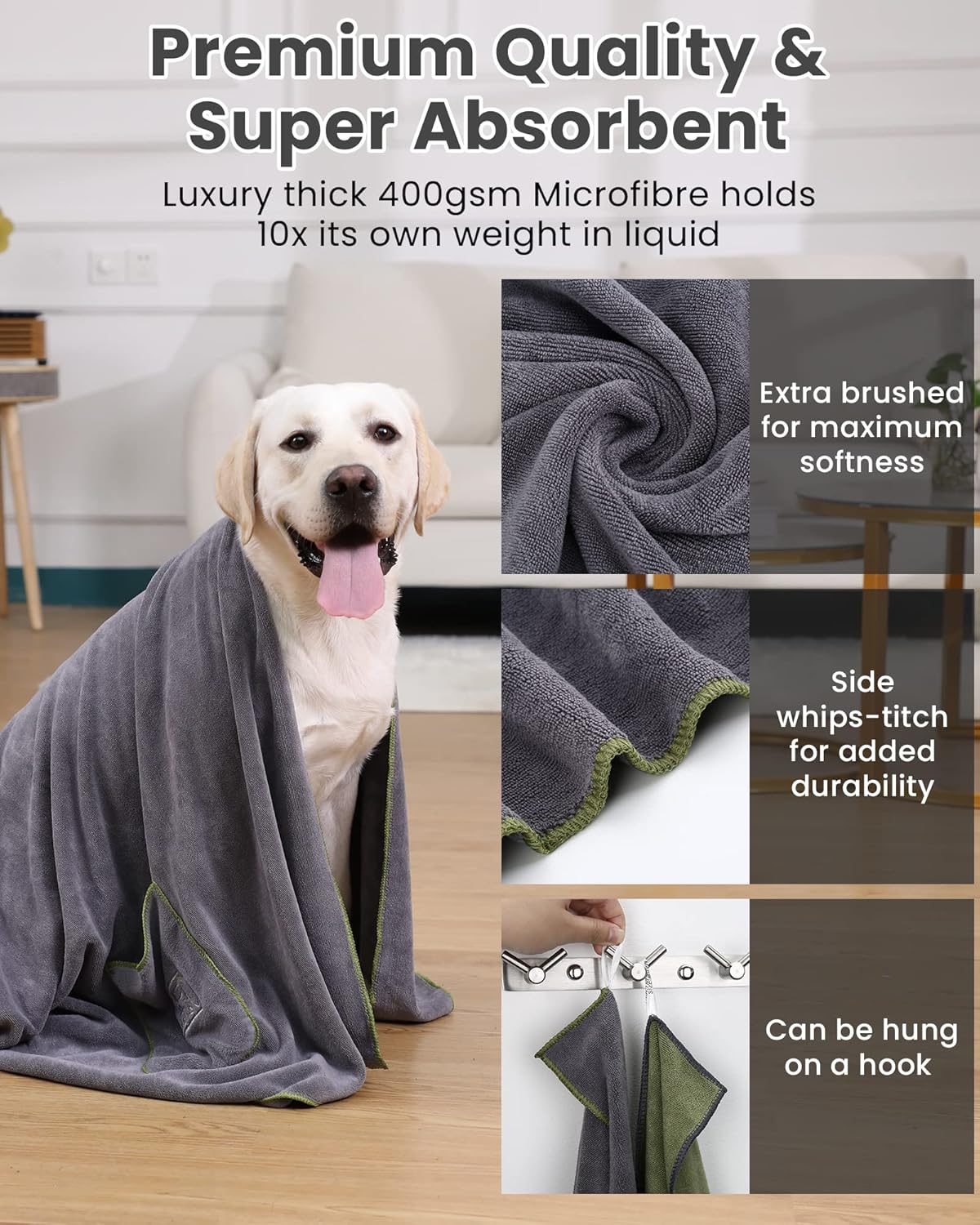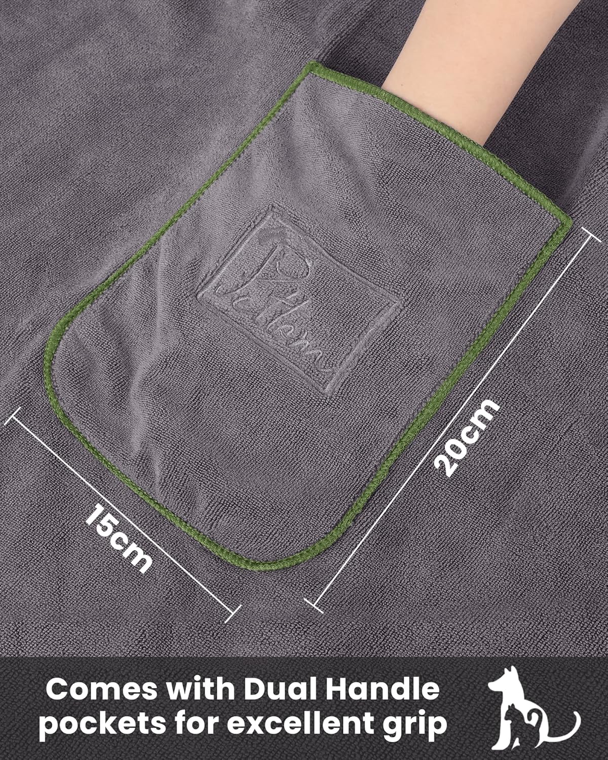 PETTOM 2 Stücke Hundehandtuch Extra Saugfähig Mikrofaser 130 * 75cm, Handtuch Hund mit Hand Taschen