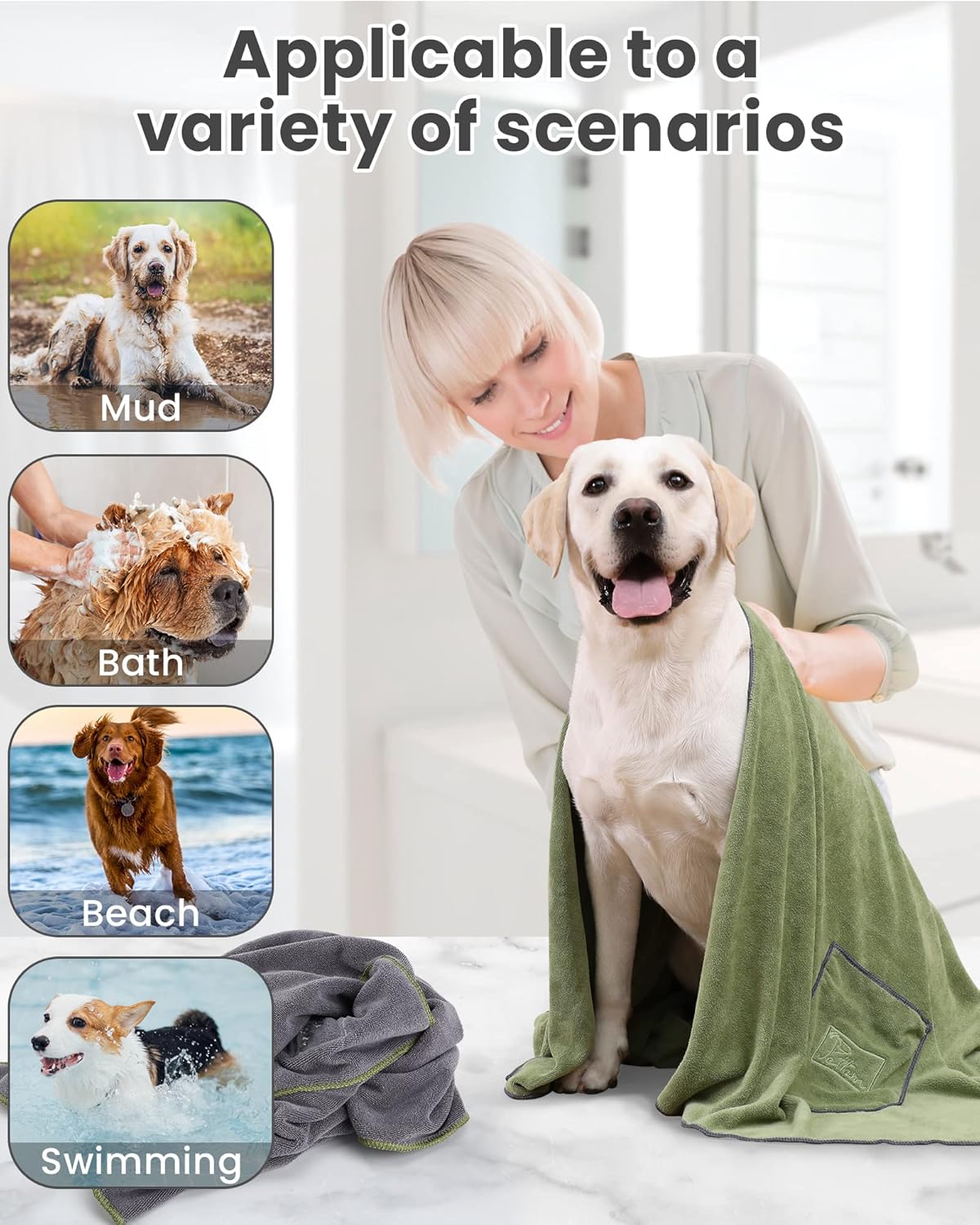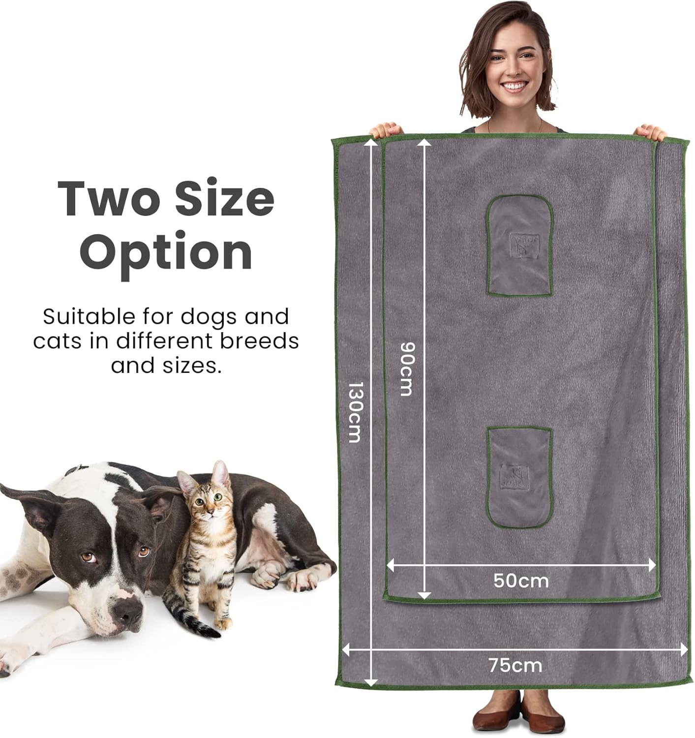 • 💦 2er-Pack Badetücher in grau und grün. Zwei Grössen sind verfügbar: 90*50cm, 130*75cm. Für grosse und kleine Hunde, Katzen geeignet.