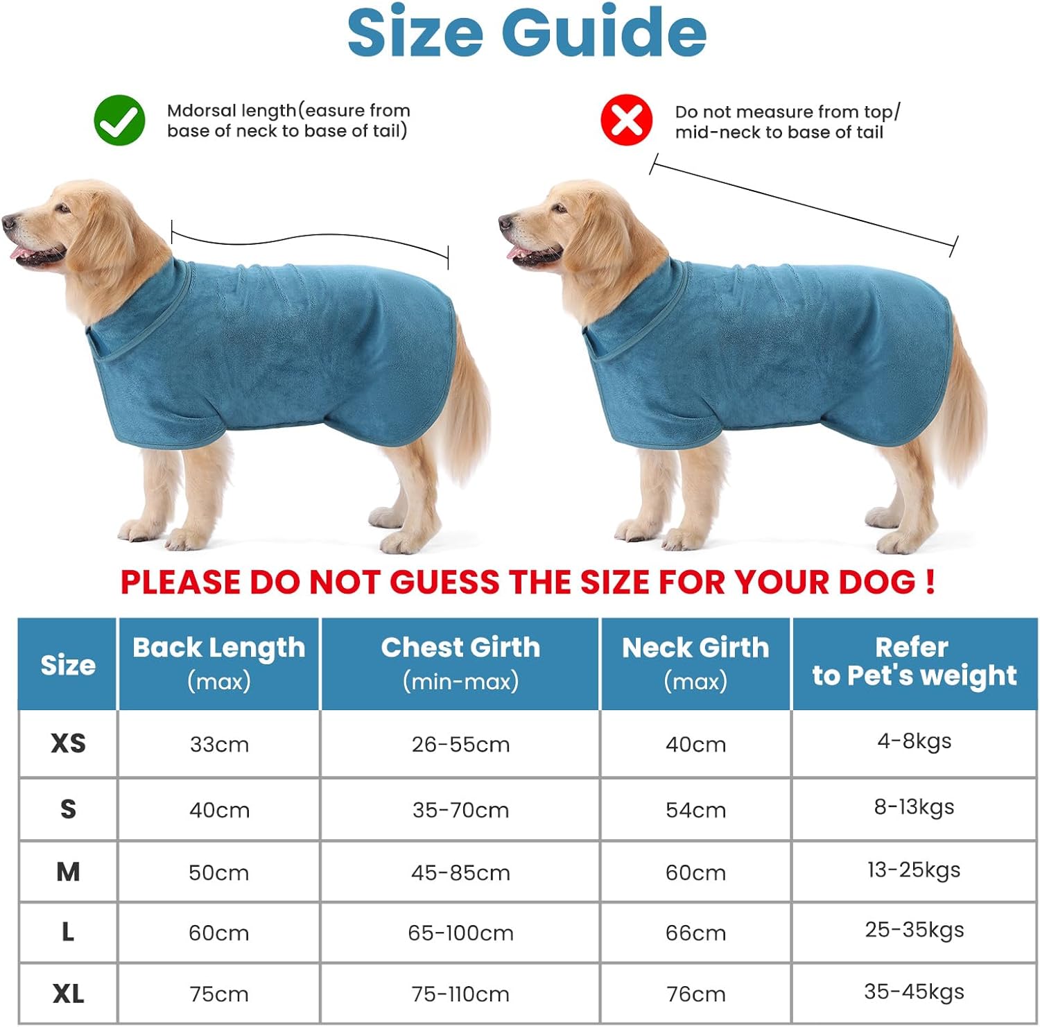 • GESICHERTE PASSFORM: Unsere Bademäntel sind in 5 Grössen (XS-XL) verfügbar und passen hervorragend von kleinen bis zu grossen Hunden, bieten eine umfassende Umhüllung für optimalen Schutz und Komfort.