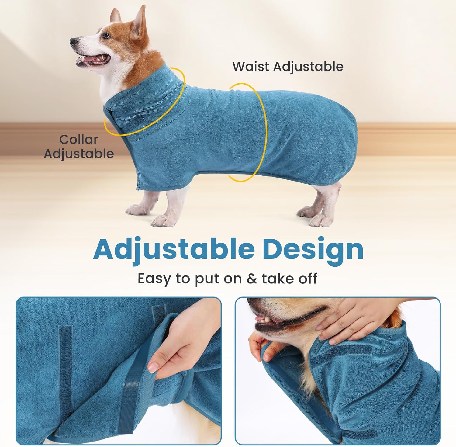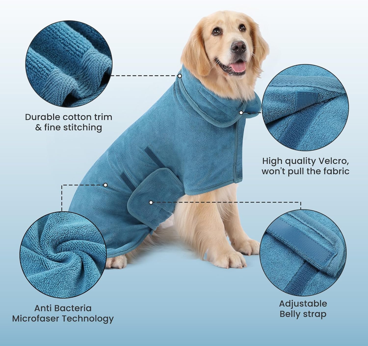 • EXTRA SAUGFÄHIG: Hunde Bademantel aus feinem Mikrofasermaterial ist super saugfähig, was das Trocknen nach dem Baden für Ihre Haustiere effizient und komfortabel macht.