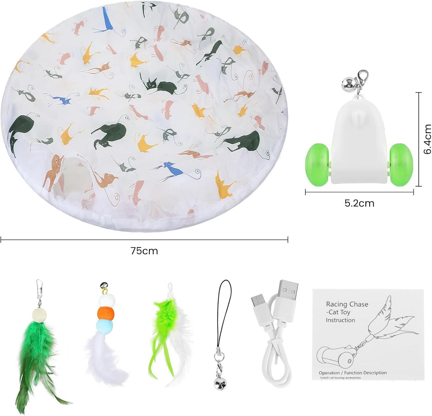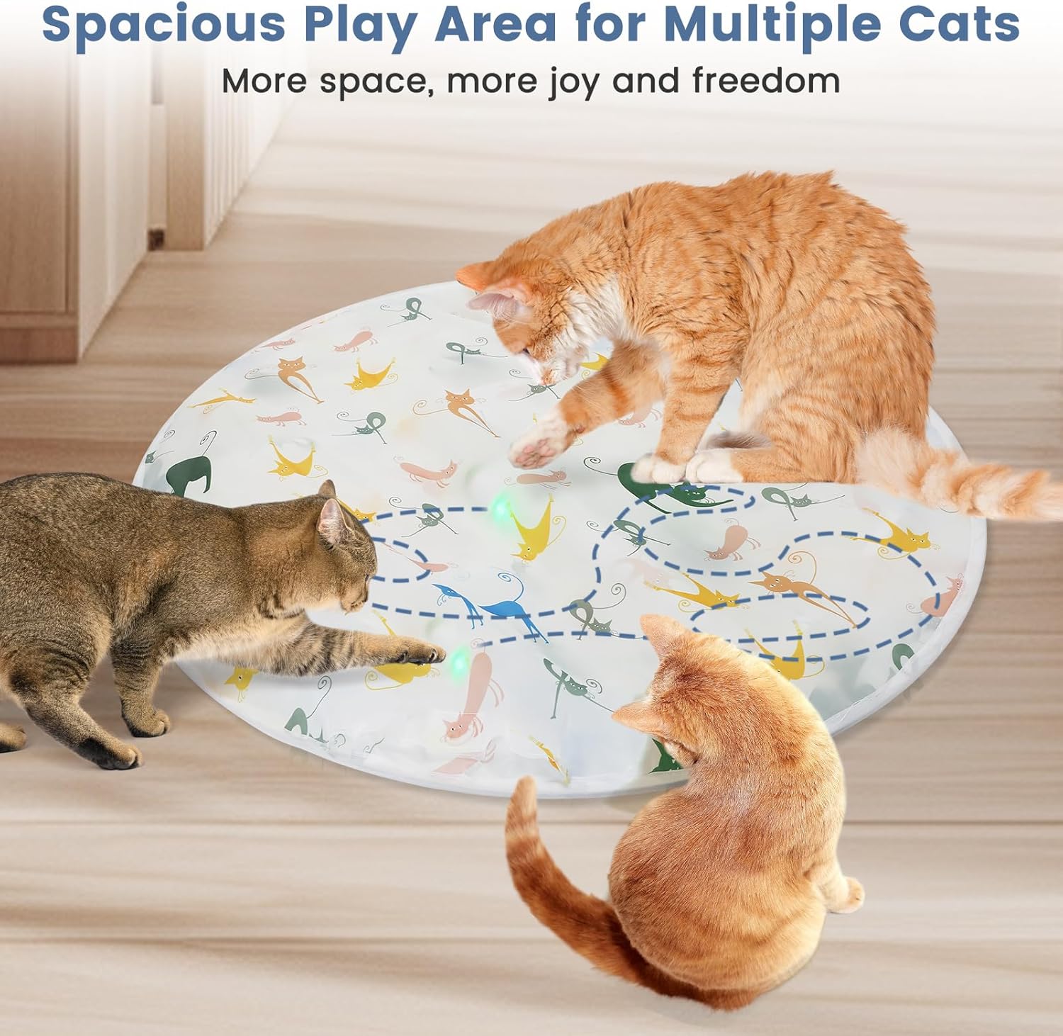 - 2-IN-1 KATZENSPIELZEUG: Unser Katzenspielzeug interaktiv besteht aus einem beweglichen Spielzeug sowie einer Spielmatte, die es ermöglicht, das Spielzeug unter der Decke zu verbergen oder es alleine zu nutzen.