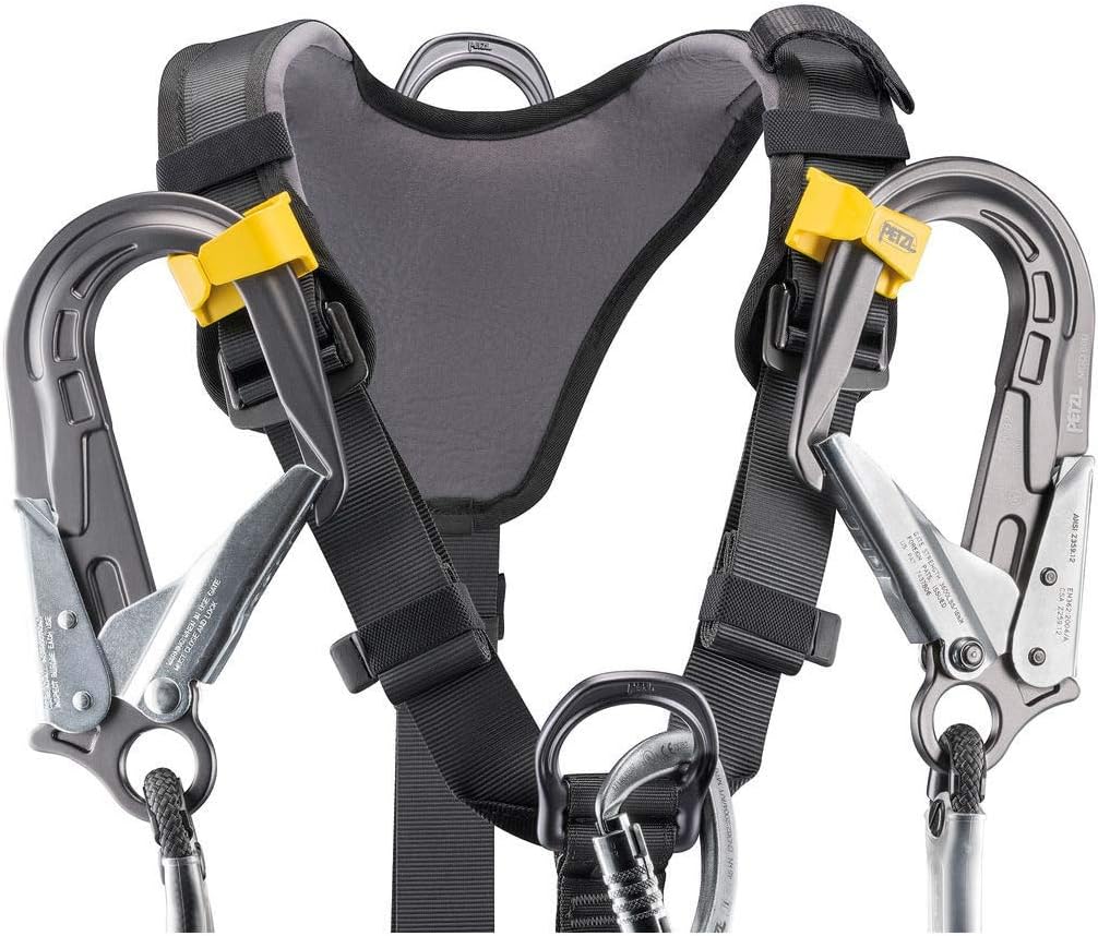 - Internationale Version ausgestattet mit Sturzindikator: Nach einem Sturz in die rückseitige Auffangöse ist ein rotes Gewebe sichtbar, was bedeutet, dass der Gurt ausgesondert werden muss.