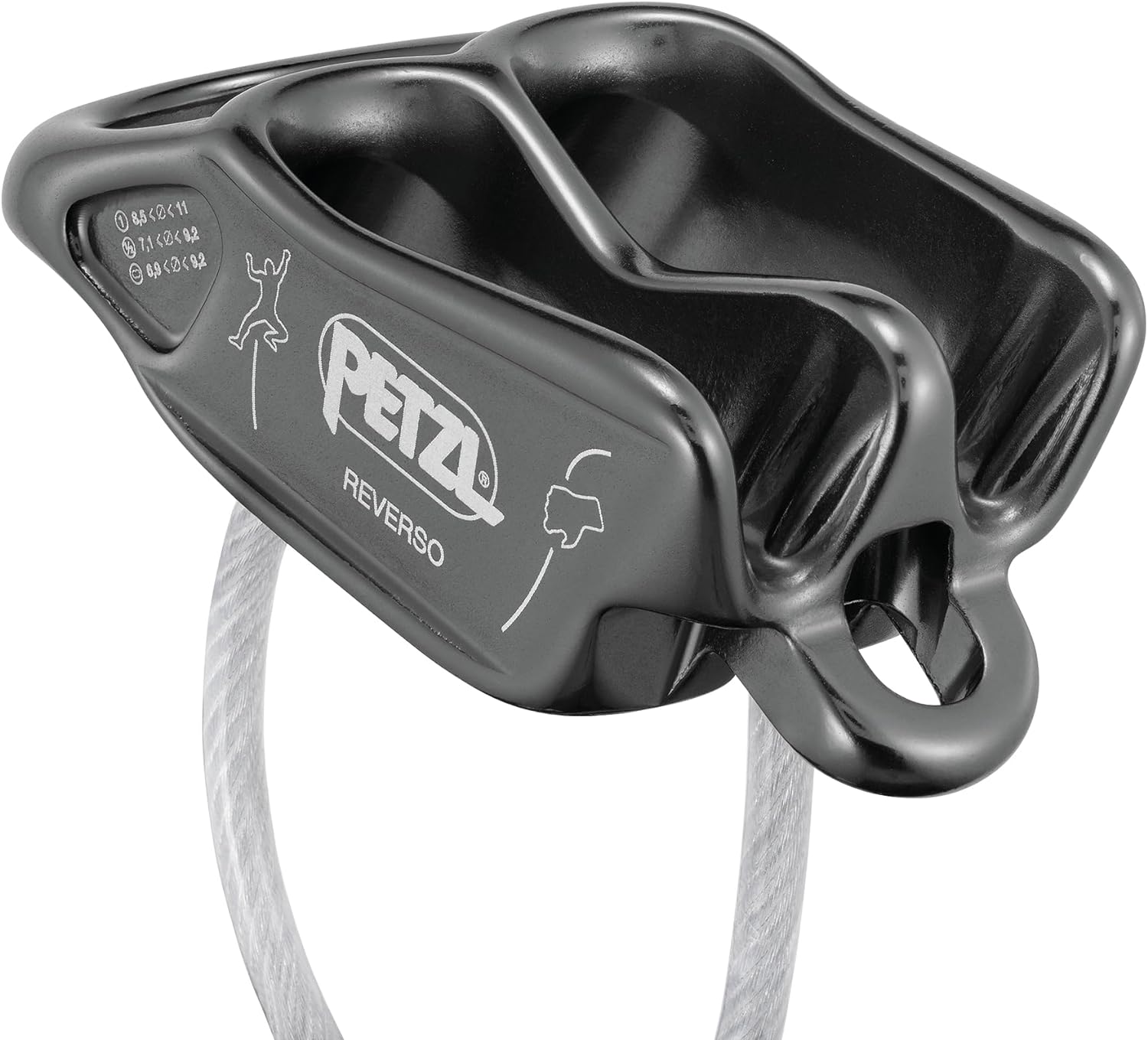 - Vielseitige Einsatzmöglichkeiten beim Sportklettern, beim Klettern in Mehrseillängenrouten und beim Bergsteigen: Es ist zum Sichern eines Kletterers und zum Abseilen an einem oder zwei Seilsträngen geeignet. Reverso-Modus zum Sichern von einem oder