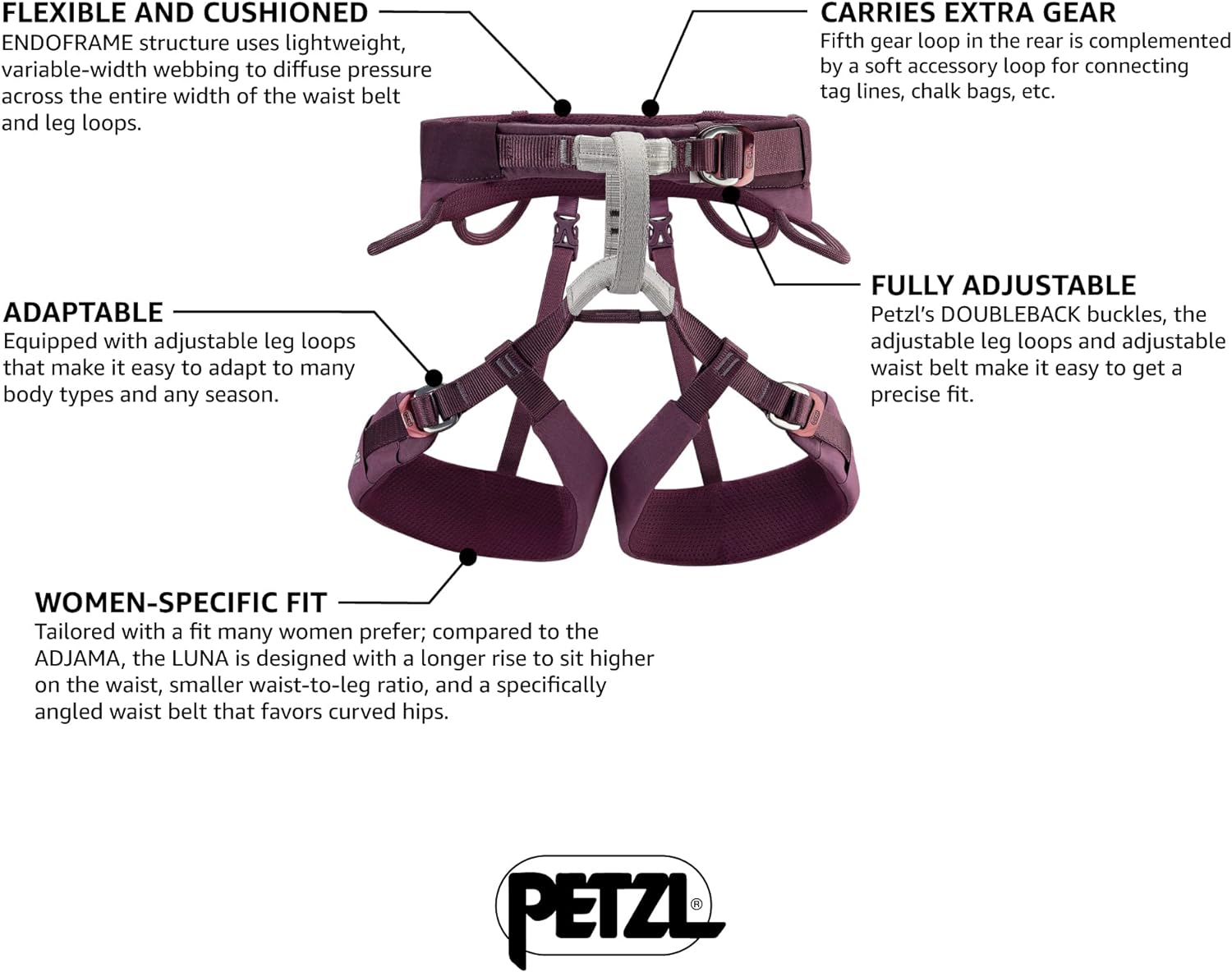 - Der Luna-Gurt überzeugt leidenschaftliche Kletterinnen mit seinem gebogenen Hüftgurt für optimalen Komfort zu jeder Jahreszeit