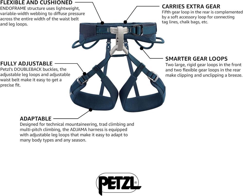 - Der Adjama-Gurt ist zum technischen Bergsteigen, Trad-Climbing und Klettern von Mehrseillängenrouten konzipiert