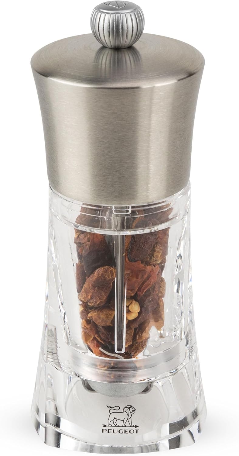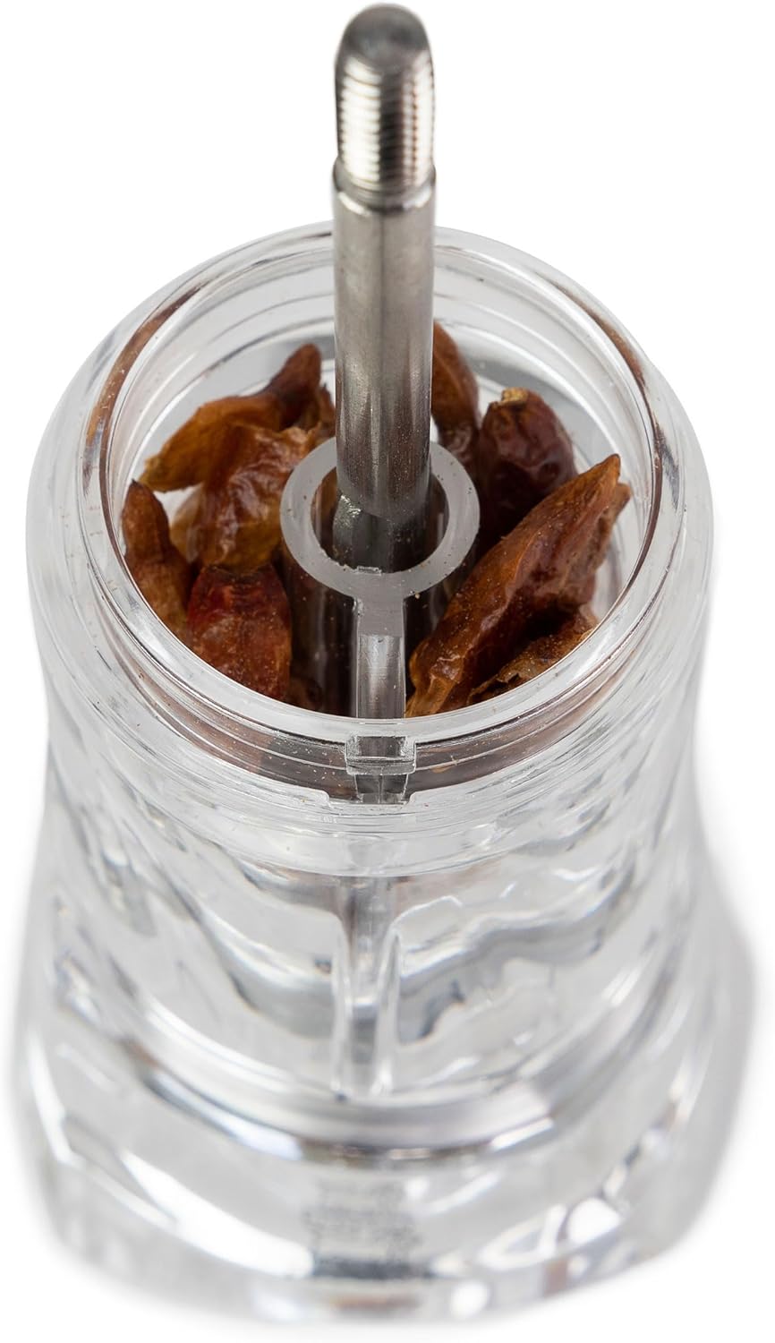 - Manuelle Gewürzmühle aus Edelstahl und Acryl zum Mahlen von getrockneten Chilischoten, Paprika und Peperoni, Ideal für Liebhaber von Aromen
