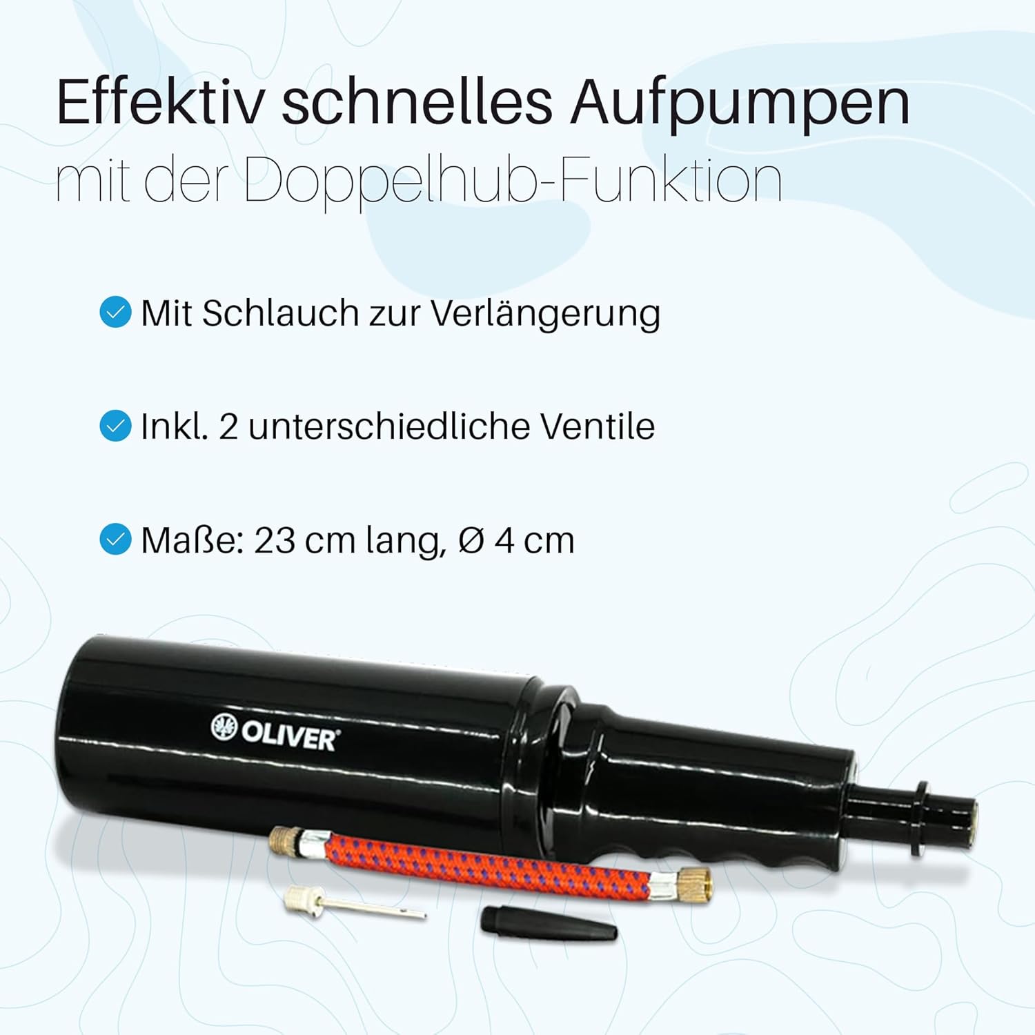 - ✔ BALLPUMPE: 1 Doppelhub-Pumpe (23 cm lang, 4 cm Durchmesser) 1 Aufsatz für Nadelventile (Ventilnadel) 1 Schwarzer Aufsatz zum Aufpumpen von grossen Gymnastikbällen, Softbällen und Pilatesbällen. 1 Ummantelter, flexibler Schlauch zur Verlängerung