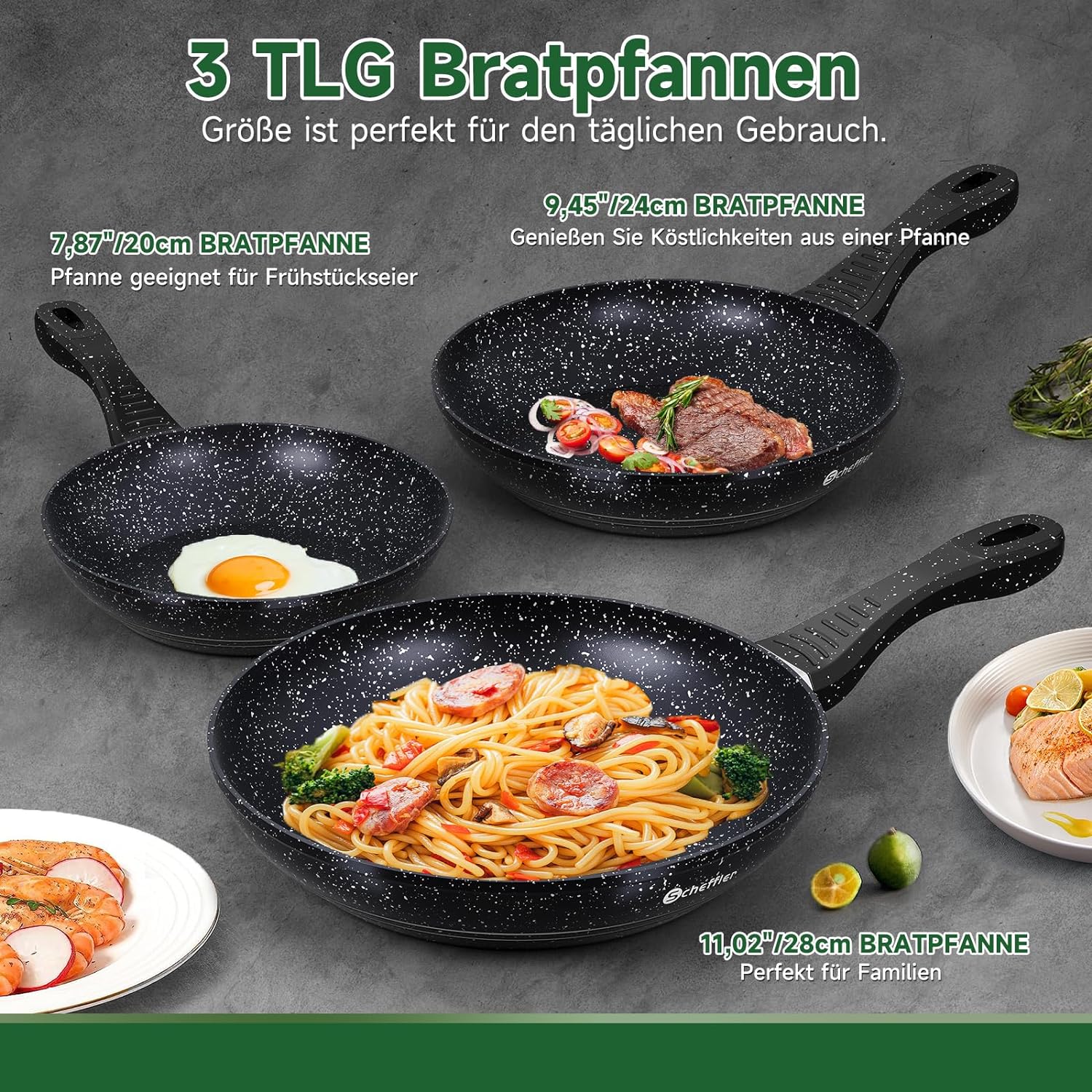 - 🍳Lieferumfang】Kochtopf,Pfannen Induktion, Ø 20/24/28cm Bratpfanne, kratzfest beschichtet, mit Vollinduktionsboden, für alle Herdarten geeignet