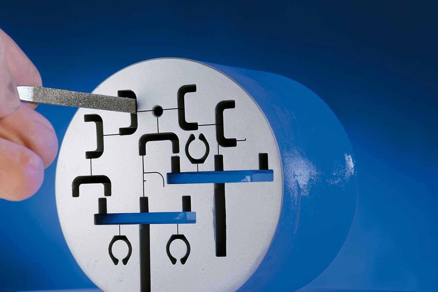 • Diamant-Hemmungsfeilen werden im Werkzeugbau an kleinsten Profilen und in der Feinmechanik eingesetzt – mit der Korngrösse D 46 können feinste Oberflächengüten erzielt werden